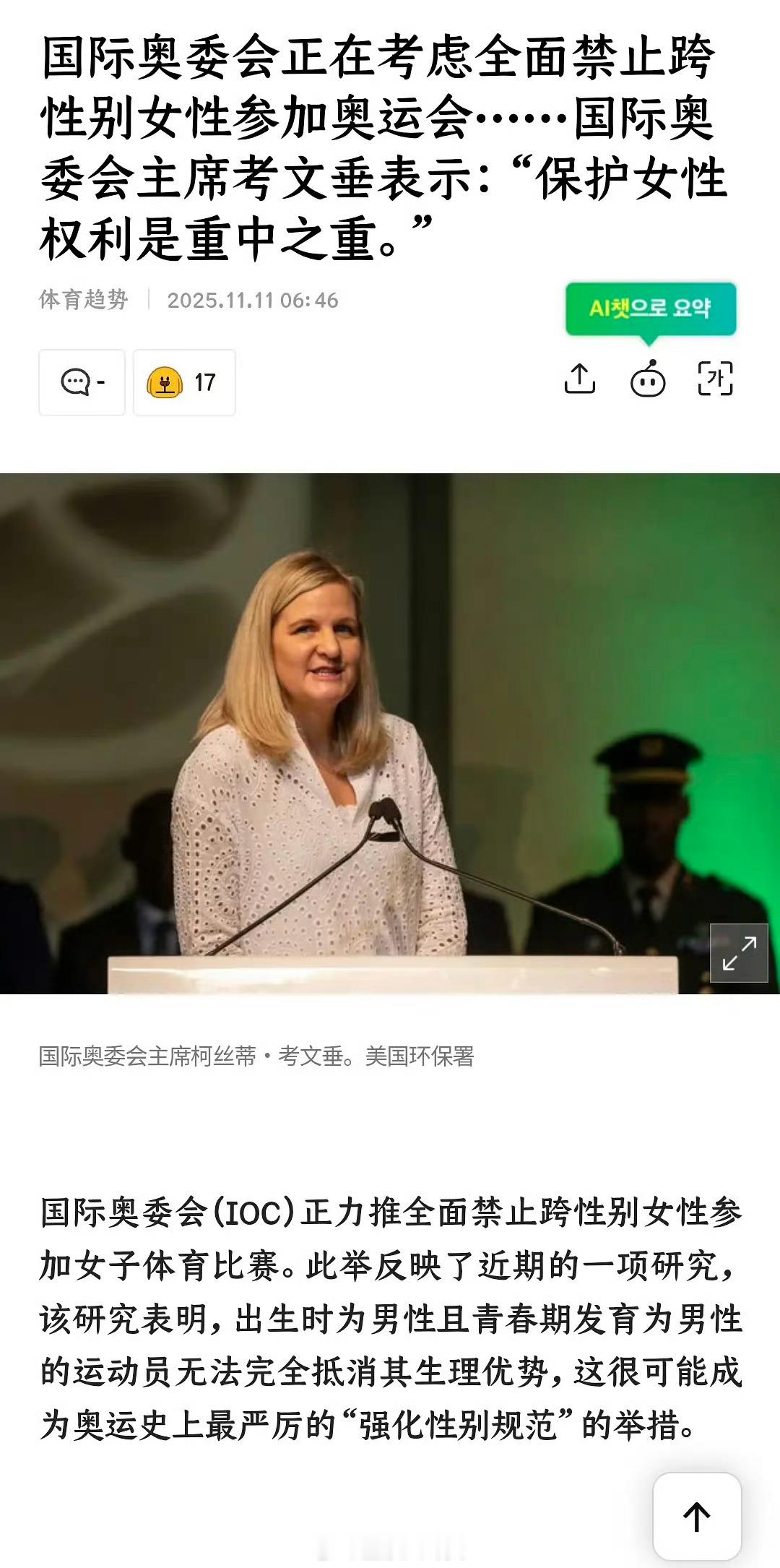 国际奥委会正在考虑全面禁止跨性别女性参加奥运会