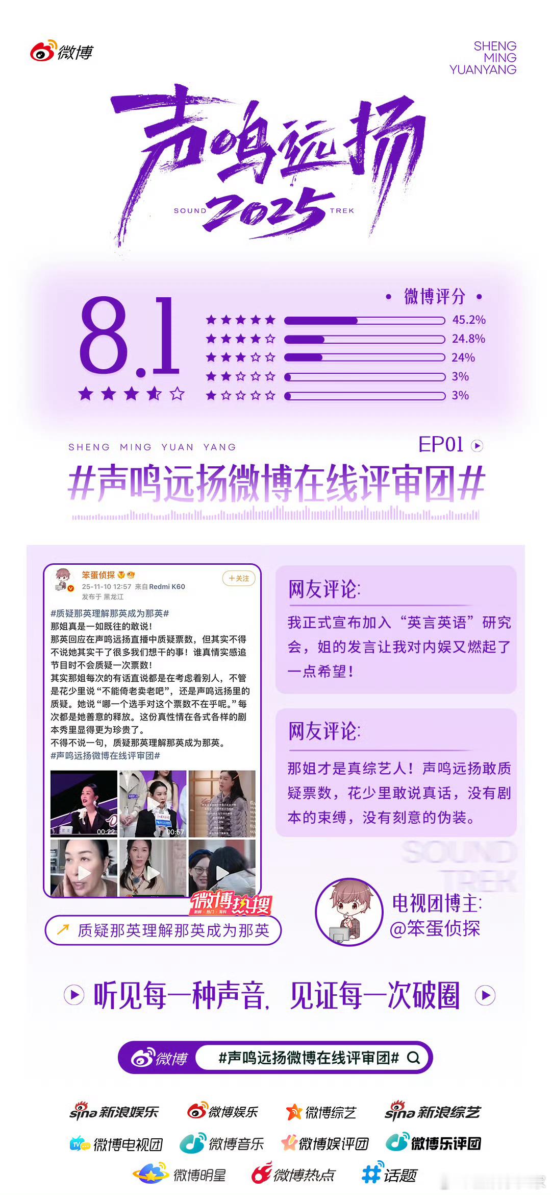我的评分:《声鸣远扬》用高分证明实力!首期直播8.1评分,热梗密集,不愧是年度音综黑马!