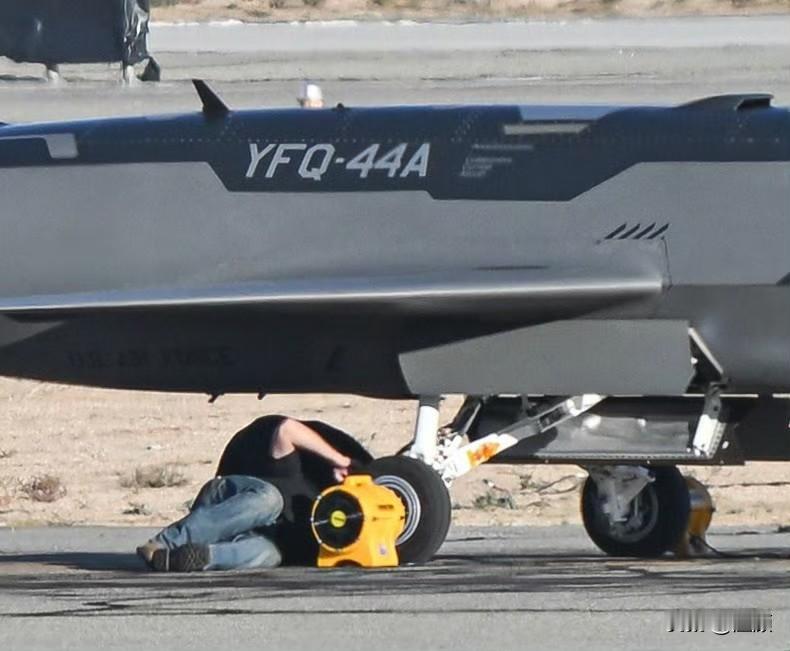别误会,不是飞机撞人了!一开始以为是无人机降落时起落架撞人了,其实是大漂亮家的YFQ-44A“狂怒”无人战斗机降落后有专人躺在机腹下,用电风扇吹起落架刹车盘,主打一个金贵。 其实作为协同作战飞机的YFQ-44A最大起飞重量才2.2吨,只能外挂两枚AIM-120,而东大新曝光的作战协同战机GJ-11的弹舱内载弹量就高达两吨。一个完全不隐身,一个高度隐身,根本不是一个级别的无人战机。