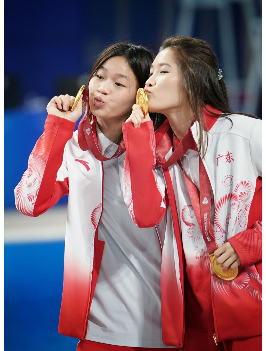 全红婵收官站凌晨发文:没有白走的路,对错都是我的脚印 11月11日,全运会跳水比赛结束,广东队以6金1银2铜的战绩,成为该项目金牌最多的队伍! 全运会跳水赛场,广东队14岁的小将全红婵拿了一块团体金牌,比赛结束了,可观众心里还是沉甸甸的,11月12日凌晨,她发了张比赛照片,底下写了一句,没有白走的路,对错都是我的脚印,话不多,但听得出她没服软。 这位奥运冠军带伤上场,脚腕缠着肌贴,镜头里总能看到她,11月2日双人10米台首秀,她和搭档一路领先,帮广东队拿下金牌,颁奖时她盯着那块金牌,手一直没松开,记者拍下她轻轻摸着奖牌的样子,像是在确认,这赢来的,是不是真的。 但命运就是爱捉弄人,五天后女子双人十米台决赛,两人只排第五,赛后全红婵说确实没跳好,话是轻快的,可听得出累,带着伤训练真不容易,每天跳完脚都疼得厉害,广东队教练何威仪说,她胫骨和踝关节早伤了,每天贴着肌贴硬撑,疼得实在受不了。 赛场外,全红婵还是老样子,训练间隙自己动手剪肌贴,对着镜头笑了笑,对手陈芋汐夺冠后说,希望她早点好起来,以后还能一起站在更大的舞台上。 这条没白走的路,奖牌和伤疤一起刻在她身上,全红婵说输赢都开心,可镜头一扫,她踮着脚走路,大家就懂了,这孩子才十四岁,却扛着比她年纪重得多的东西。