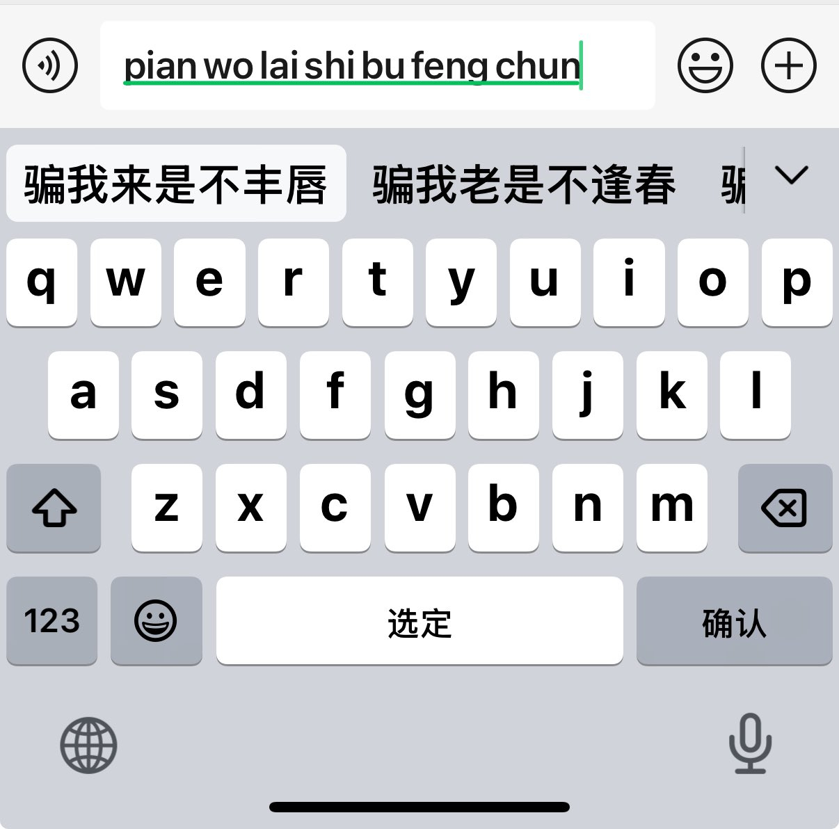 谁来管管苹果自带的输入法,感觉没上过网没经历过社会化训练一样,成语词语长句是不会拼的,常用词是记不住的,还会自己耍点小聪明,打的打的就会变成这样你们手机上都用什么输入法?