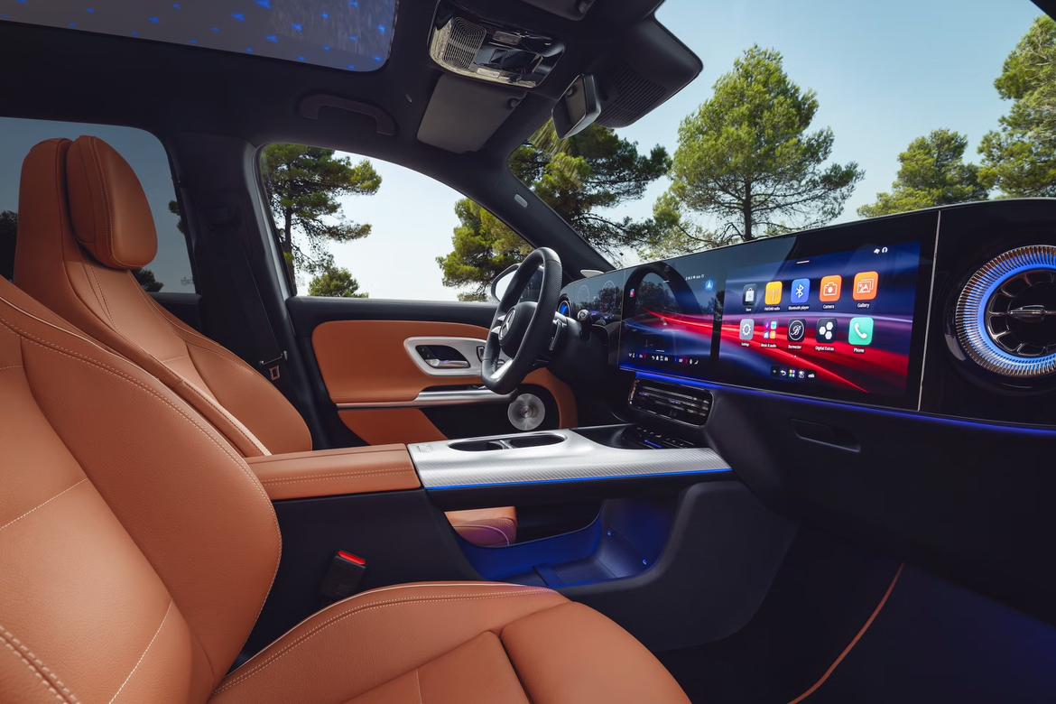 奔驰发布了全新纯电动GLB的内饰。 它包括横跨整个仪表板的三个屏幕、一个全景玻璃车顶(可选配星形照明图案)以及大量氛围灯。 大家觉得怎么样?跟我们国产品牌的内饰相比呢?