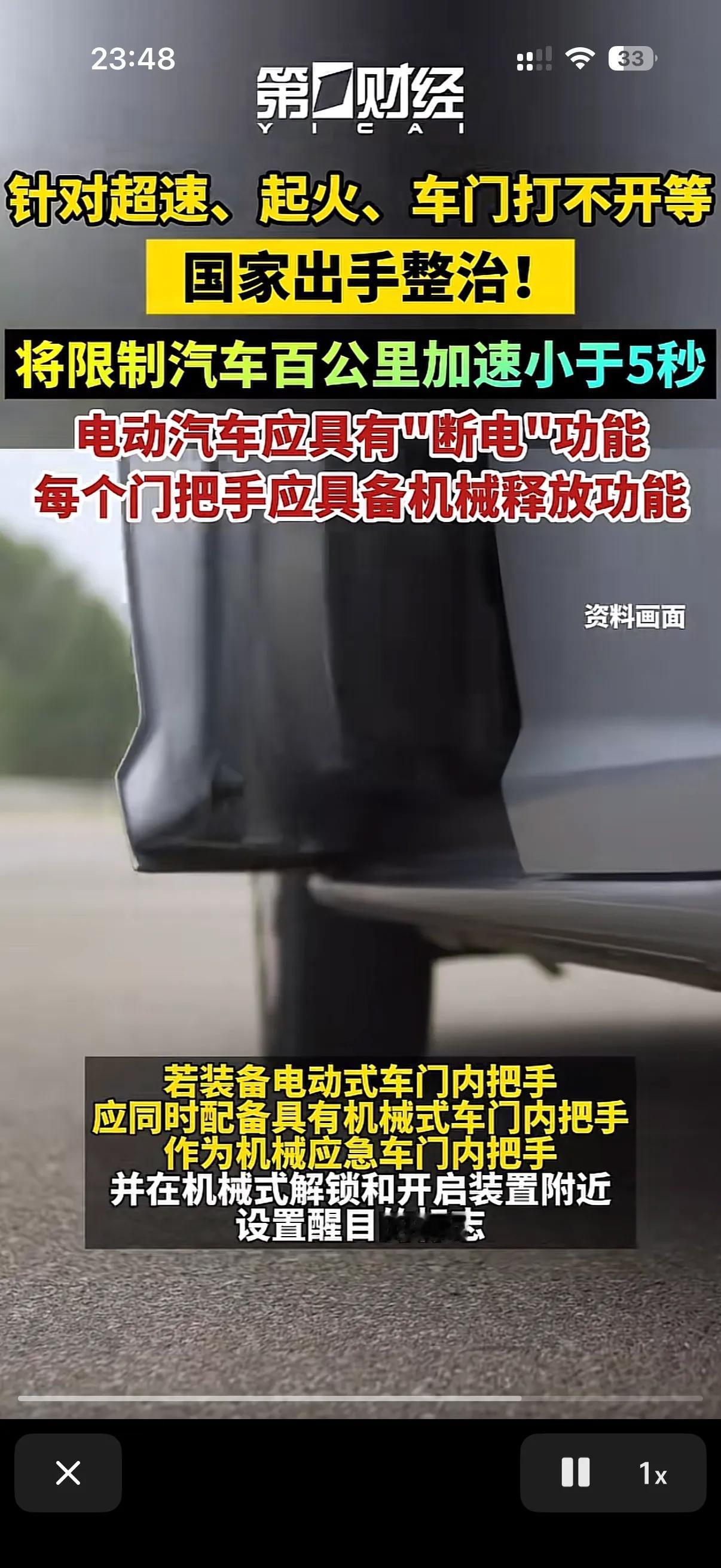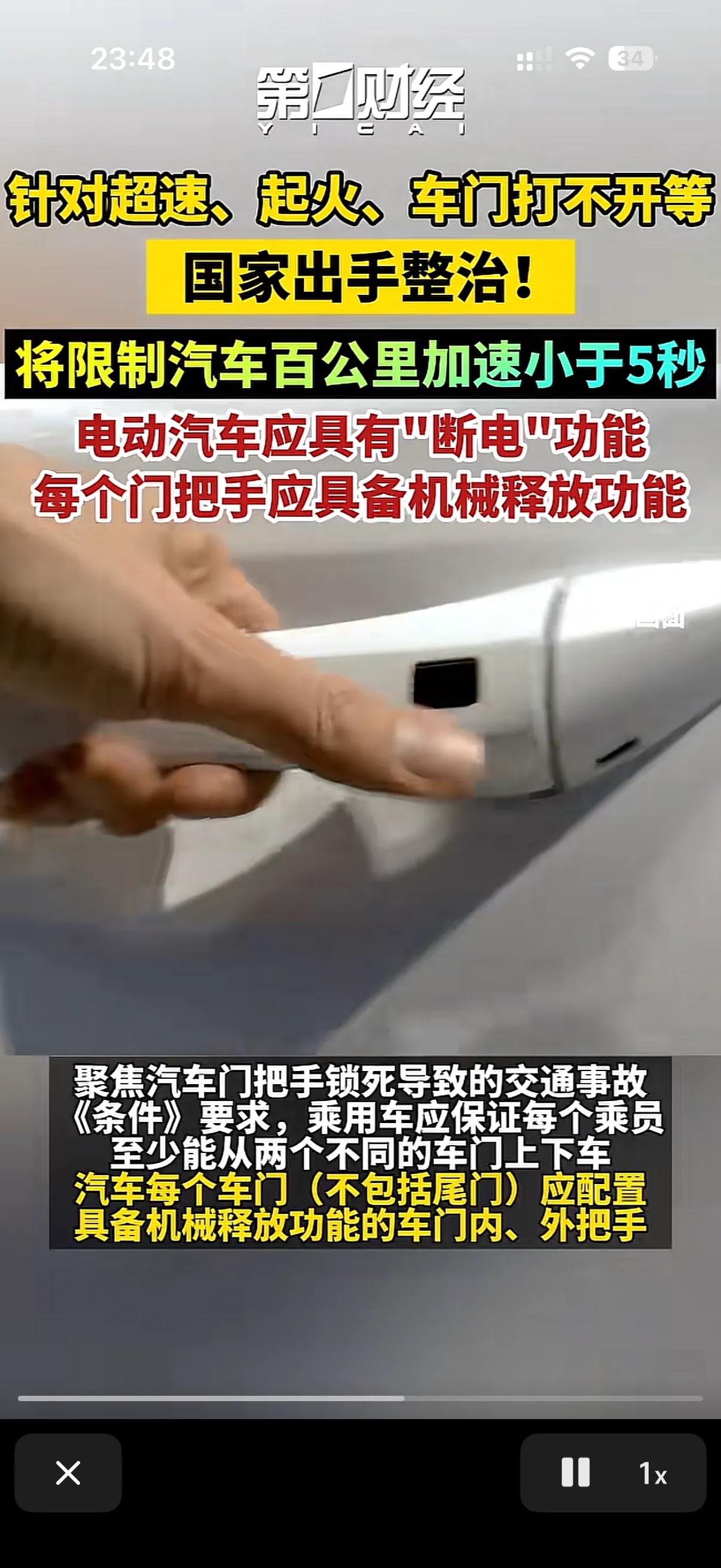 野蛮生长的新能源汽车终于要出统一规定了! 现在目前的隐藏电子门把手和加速零到一百五秒以内将会成为绝响了! 国家出手整治这些!比如每个门把后都要具有机械释放功能!这对于现在的一些新能源车企来说就不是一个好消息,因为现在有些新能源车企已经将电子门把手吹上天了,完全放弃了机械门把手!