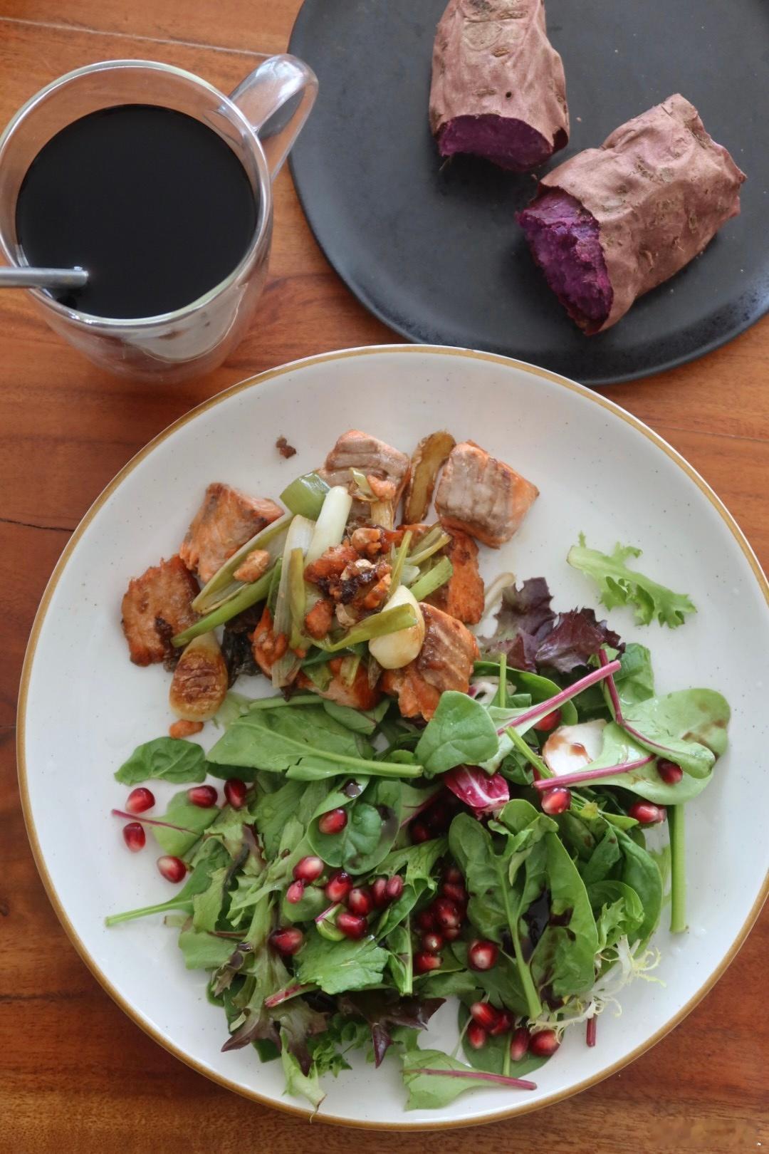 抗炎饮食day78✅收到了正反馈好开心早餐:微波炉西蓝花🥦、温水冲山药汁午餐:葱姜蒜煎野生三文鱼配石榴沙拉🥗,总是烤换换口味,稍微加了点椰子酱油,有点照烧的感觉;烤紫薯。晚餐:芦笋炒虾仁、杂菌鸡汤加了一捆油麦菜抗炎饮食打卡两个半月,收到了网友的正反馈,感觉更有动力分享了!起初打卡是为了保持记录、跟AI互动、更有系统的upgrade自己的饮食体系,经常收到网友的质疑和疑问,刚好逼我费曼学习法、完善了我对抗炎饮食的理解,打卡的同时也把这些一点一点分享出来,刚好被算法推给需要的朋友,美哉善哉我也是吃了好多年的垃圾(尤其是在美国上学工作这些年),不是说几个月抗炎饮食就能抵消掉那么多年的瞎吃。从每天的每顿饭的选择,一起一点一点更健康吧!