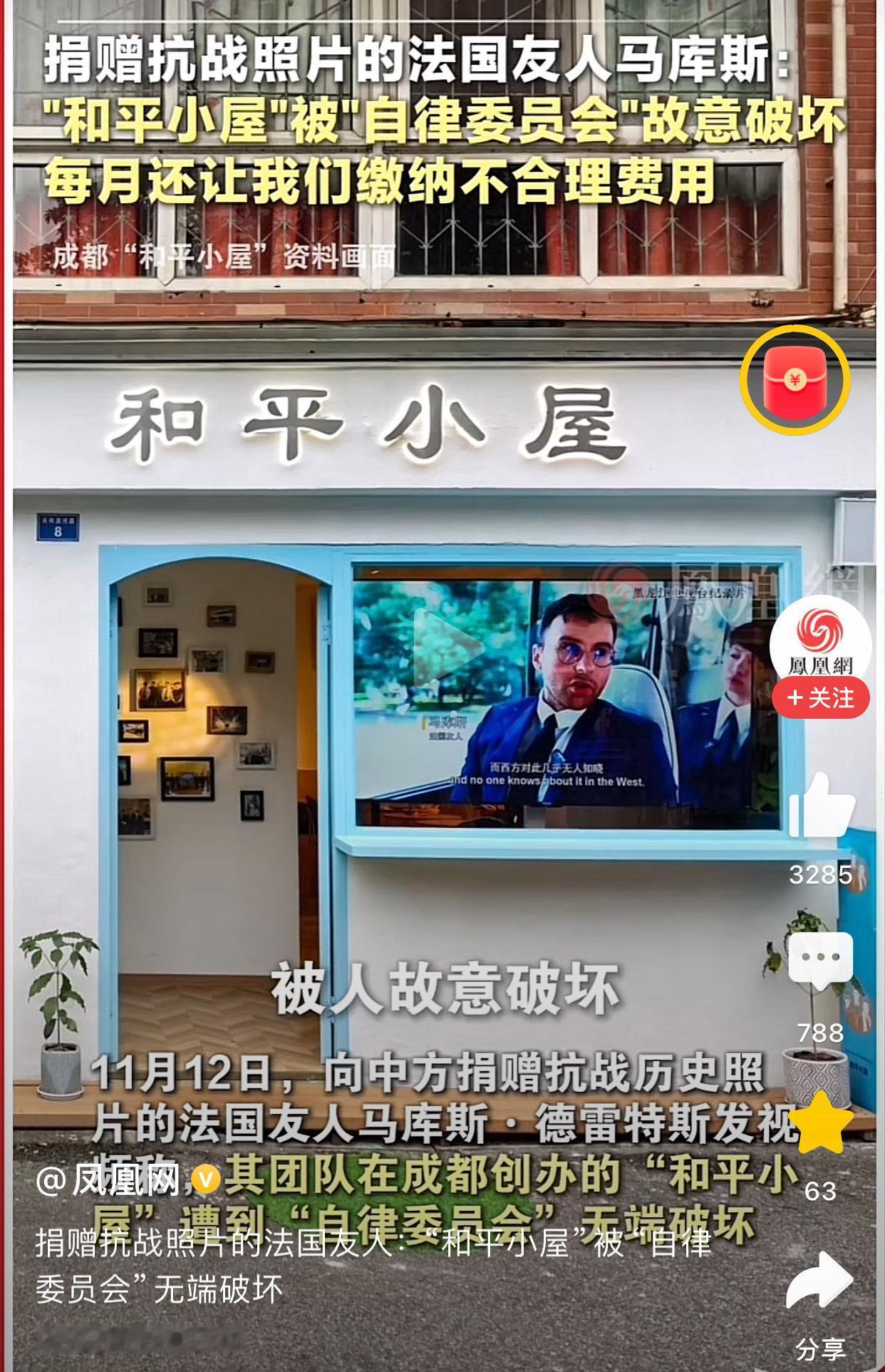 现在最后悔的就是这个贾女士了吧 社死只是第一步可能还会面临调查 也不知道谁指使的 什么自律委员会听都没听过 就跑去没有理由的让人家交钱 跟纹龙画虎的收保护费有什么区别 而且收费的对象还是和平小屋 这个小屋展览的是抗战照片 它的主人是向中国捐赠抗战照片马库斯 任何一个爱国的中国人都干不出这种事 任何一个热爱和平的人也干不出这种事 任何一个有良知的人也干不出这种事 这个委员会到底是什么组织 有执法权吗?