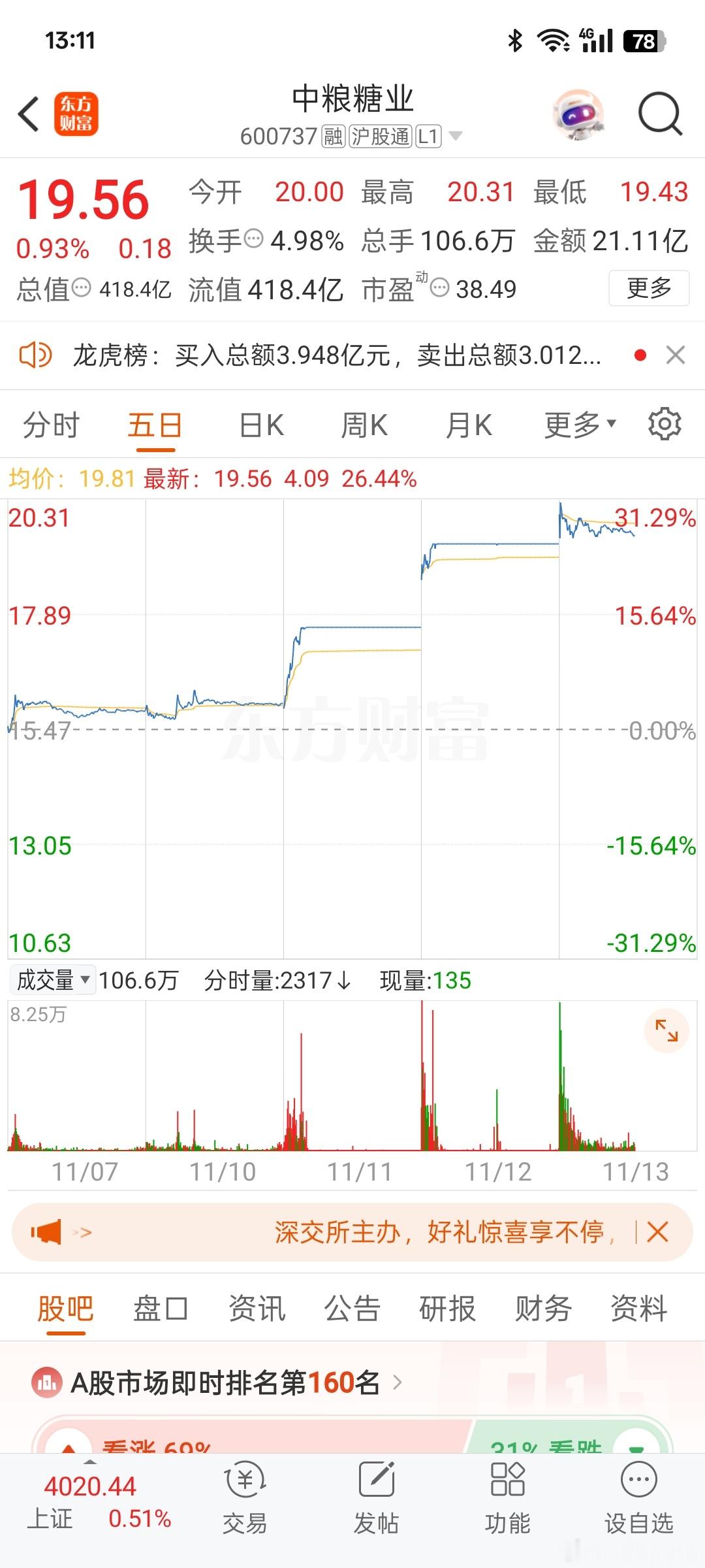 实力见证!实力见证!11月7号姗姗姐在铁粉群分享的$中粮糖业 sh600737$
