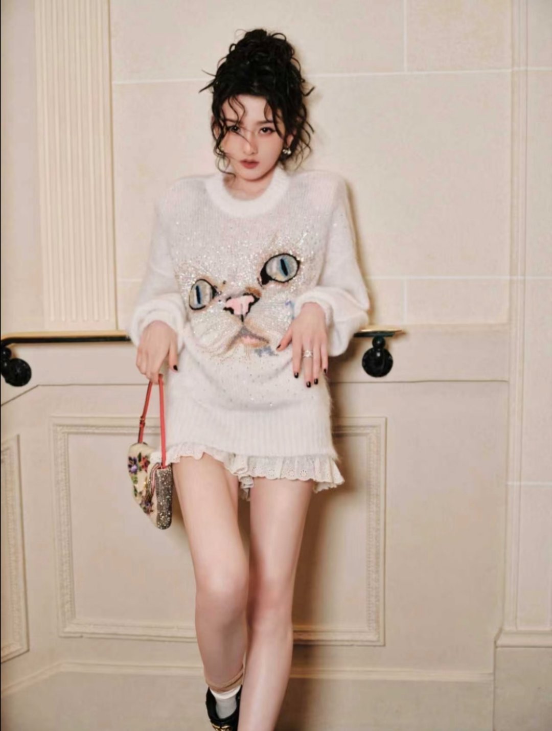 刘亦菲把死亡玫粉穿出了定制款的感觉,这种颜色普通人穿上分分钟黑三度,她居然能穿出