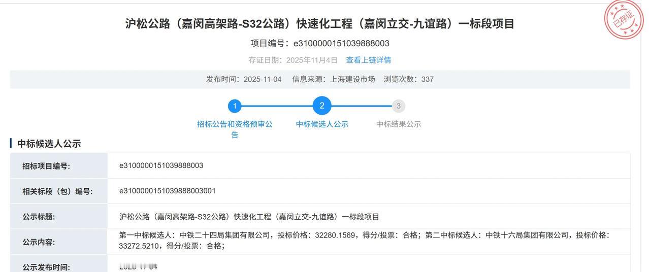 沪松公路快速化项目一标段已中标,即将开工 城市规划建设近日,沪松公路(嘉闵高架路-S32公路)快速化工程(嘉闵立交-九谊路)一标段项目中标候选人公示,中铁二十四局集团有限公司拟中标该项目,投标报价32280.1569万元。 沪松公路(嘉闵高架路-S32公路)快速化工程(嘉闵立交-九谊路)一标段项目建设地点位于嘉闵立交至沪亭东侧上匝道合流点(新漕泾东侧)。该工程主要建设内容包括: 1.新建主线高架(城市快速路标准),在嘉闵立交处与漕宝快速路主线相接,向西至九谊路,采用双向6车道。 2.改建地面辅道(二级公路(城镇段)标准),东起涞亭路交叉口,西至九谊路交叉口,采用双向6快2慢,长约2.43千米,规划红线宽度45-72.5米,沿线改建地面桥2座。 3.在沪亭北路两侧各设置1对上下匝道,采用单向2车道,长约0.96千米;新建嘉闵高架路北向西、南向西、西向北及西向南立交匝道4根,采用单向2车道,长约2.13千米。 同步实施道路排水、驳岸、照明、绿化景观、交通工程等附属设施。 工程总投资1359000万元人民币,本标段建安工程费40304.62万元人民币,设置最高投标限价,最高限价为336596748.08元人民币(33659.674808万元),施工工期1278日历天。