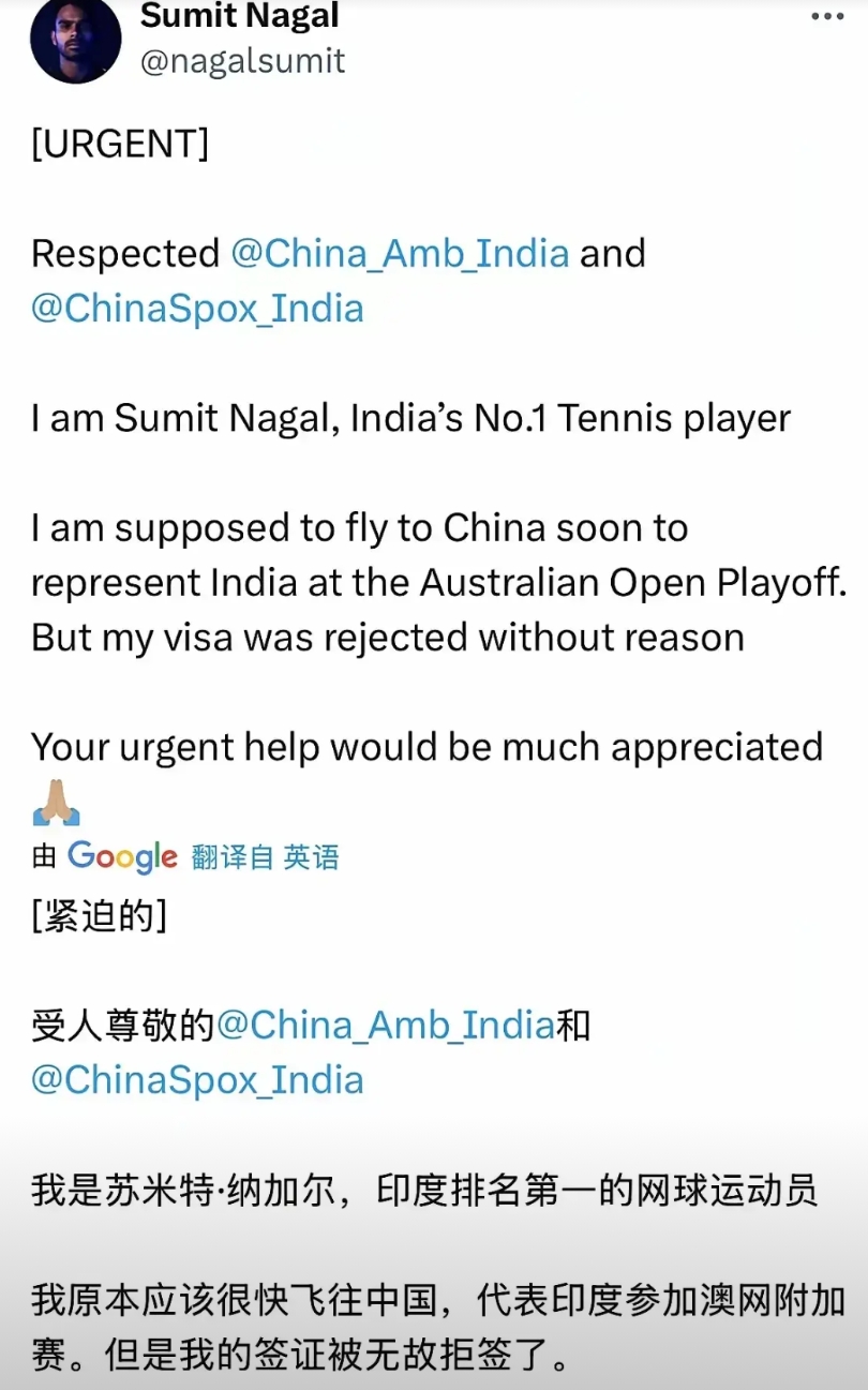 2026年澳大利亚网球公开赛亚太区外卡赛将于2025年11月24日—29日在成都举行。若纳加尔无法及时获得签证,将失去直接争夺2026年澳网正赛席位的机会。