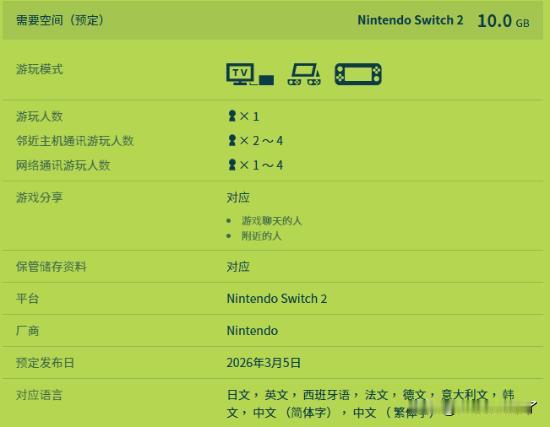 【真有你的任天堂!】任天堂宣布《宝可梦》新作《宝可梦Pokopia》将于2026年3月5日发售,登陆Switch2平台。本作已在eShop开启预购,港服售价为449港元。官方确认,实体版将采用钥匙卡的形式。 抢先购买特典将赠送“百变怪地垫”,2027年1月31日之前可在游戏中选择“通过互联网接收”即可领取“百变怪地垫”。领取该特典需网络连接,但无需加入Nintendo Switch Online会员。另外,即使没有预购游戏的玩家,也能通过游戏内的正常游玩过程获取“百变怪地垫”。 本作的容量大小约10GB,支持简中、繁中等9种语言。在使用日语专用版Switch2时,仍可在游戏内选择其他语言。