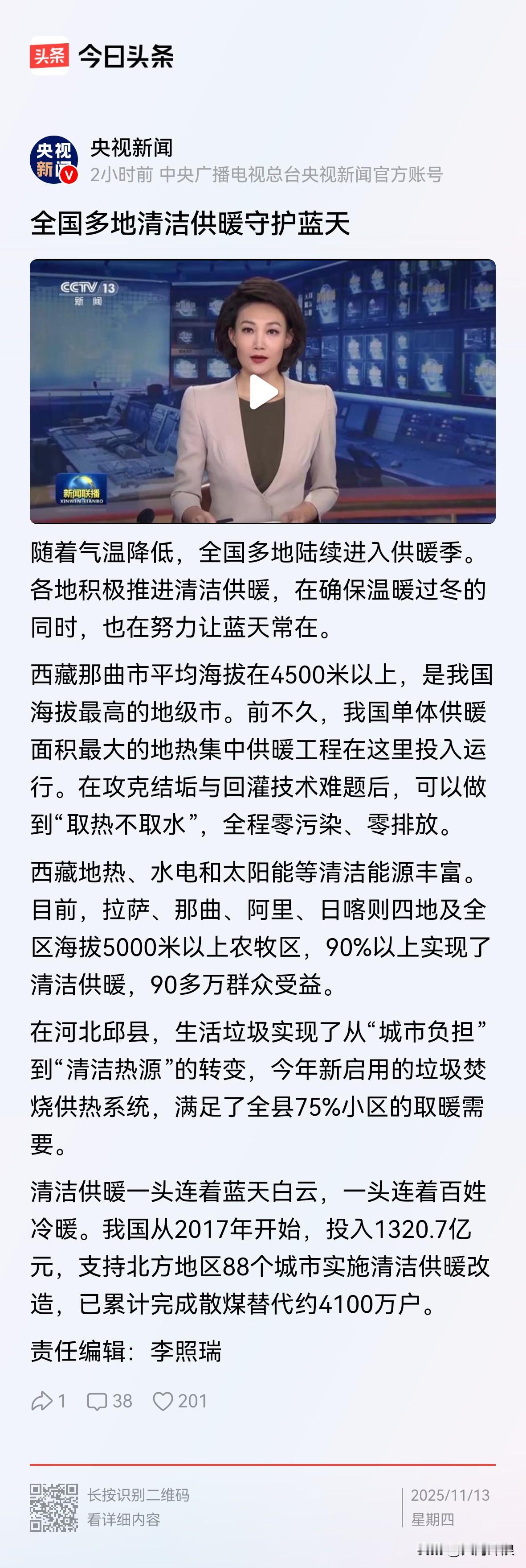 什么叫幸福 这就叫幸福 清洁供暖 暖到心田 清洁供暖 一头连着 白云蓝天 一头连着 百姓冷暖 让我们一起 为清洁供暖 点赞 点赞