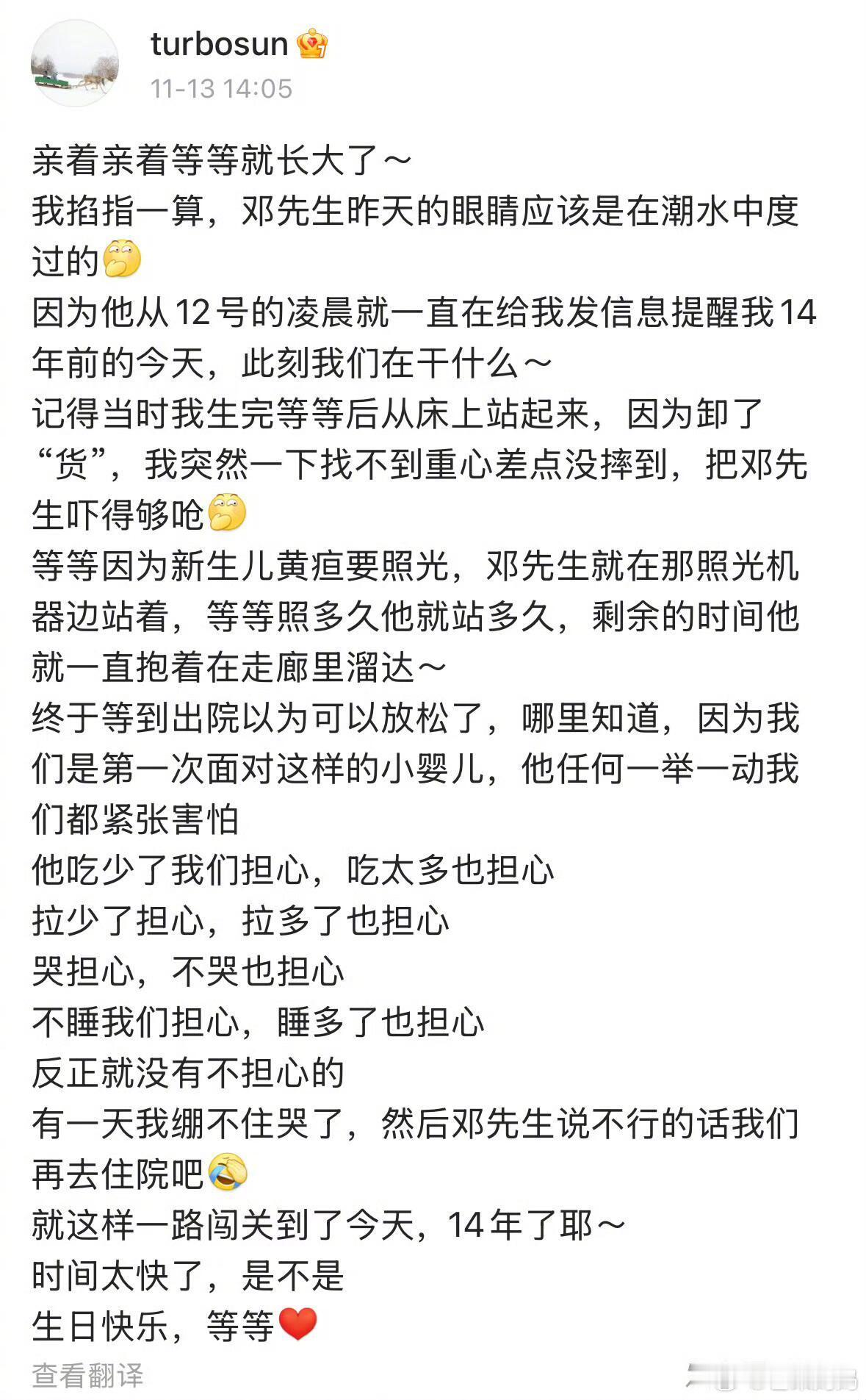 孙俪发文庆祝等等的14岁生日,等等又双叒叕被爹妈邓超孙俪亲变形了,看得出来等等长大了,情绪稳定已经见怪不怪了,好幸福的一家子啊