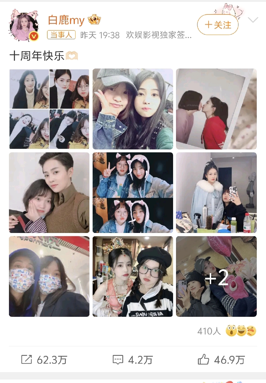 没想到白鹿的助理竟然是她的闺蜜,而且俩人已经拥有10年的友谊了!白鹿今天也特地发文庆祝和闺蜜的10周年纪念。
