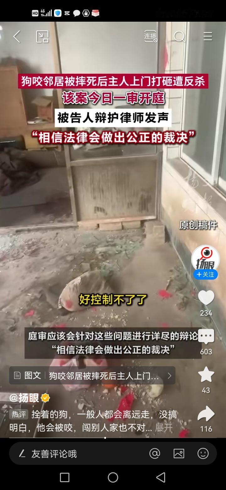 狗咬邻居被摔死后主人上门打砸遭反杀,11月13日,因咬人引发邻里之间的一桩命案,于上午在山西省长治市中级人民法院一审开庭。近年来狗咬人事件频繁发生,你的狗再娇贵,那是你的事,你不应该危害别人啊。本案中狗主人竟然到对方家打砸,可见其人蛮横无理,嚣张程度,非法入侵民宅,人家生命财产受到威胁,难道不是正当防卫,至多是防卫过当。被狗咬伤案 恶狗咬伤