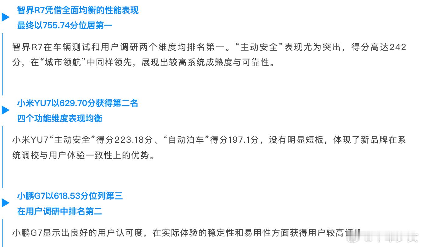 看到YU7在J.D. Power君迪和AutoLab联合的白泽奖评测里拿了总分第二名,要知道这次参评的都是市场上的热门好车,能从这么多强手中冲在前头,真的又惊喜又自豪!评测里提到YU7在四大核心维度上特别均衡,没什么明显短板,尤其是系统调校和用户体验的适配度特别好,单主动安全一项就拿了223.18的高分。作为从提车用到现在的人,确实能感受到这份实力,不到2年时间,小米从智驾新人冲到行业前列,甚至比国内特斯拉FSD表现更出色,不过也得跟大家念叨一下:辅助驾驶再好用,核心也是“辅助”,绝对不能替人开车,毕竟安全才是第一位!