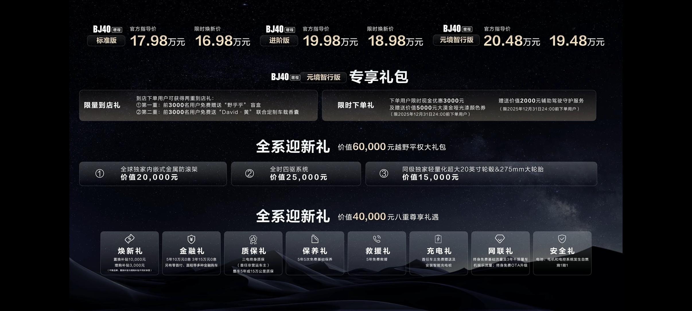 北京越野BJ40增程元境智行版上市,限时焕新价19.48万,新老用户都送权益,还