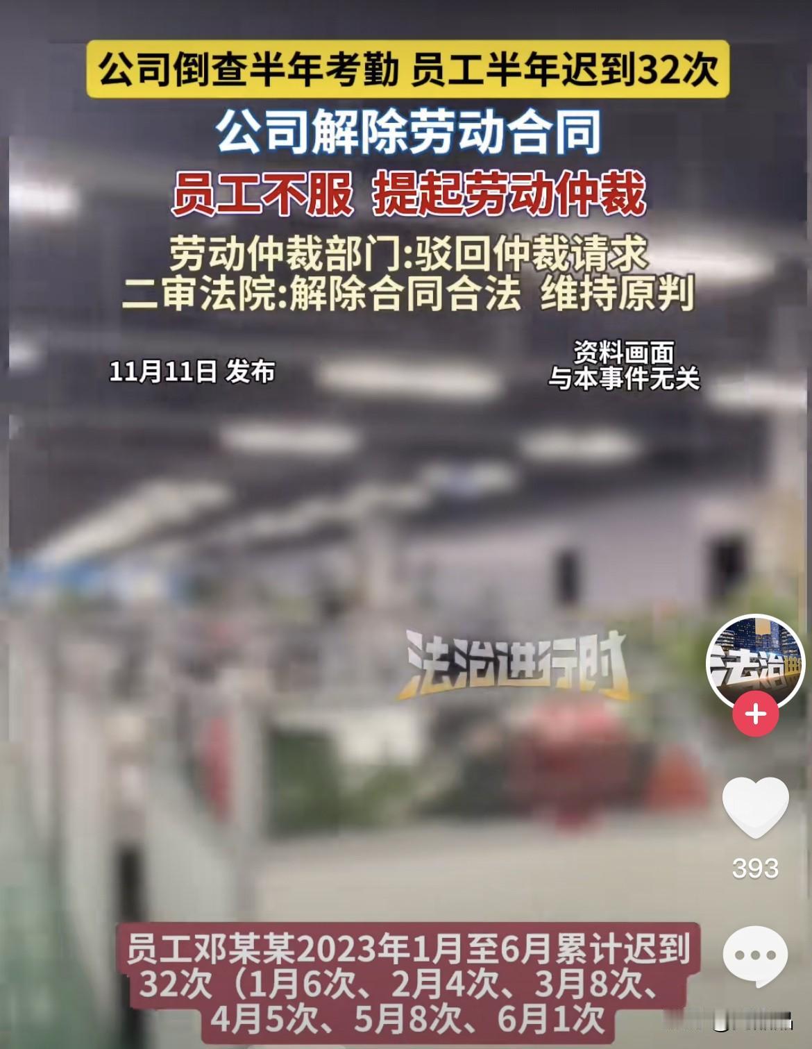 员工半年迟到32次,公司警告后解雇,法院判合法解除合同。 近日一起劳动纠纷案件二审判决,公司解除合同合法,维持原判。看完整个案件,同样做为打工人的我,这次我站公司。 案件回顾:邓某2020年入职公司,签定为期三年的合同,到期时间为2023年12月。在2023年6月份25日,公司倒查半年考勤记录,因邓某半年迟到32次,公司对此通报批评,6月27日微信提醒邓某整改无效,28日直接发整改通知书,整改期2天,如不整改视为严重违规行为。结果29日邓某又迟到了。7月3日,公司以严重违规为由,跟邓某解除劳动合同。 邓某认为公司看他合同快到期,想零成本裁员,认为自己2021-2022年均有迟到,公司也没提出异议,于是不服上诉。结果邓某傻眼了,法院判决公司解除劳动合同合法,不需要给邓某经济赔偿。 是错就认!半年迟到32次,最多的一个月竟然迟到8次,每月工作日22天,就有接近一半时间迟到,站在公司角度,是个老板都不能忍。公司给予了机会整改却不珍惜,整改通知书下达第二天依然迟到,这不是打公司的脸吗?说实话,没见过这么懒散的打工仔!哪个打工人不想在老板面前多表现,争取升职加薪呢? 员工遇到不公平待遇时,该合法维护自己的权益,但得自己在理!理在,公义在。 对此,你们支持员工还是公司呢?