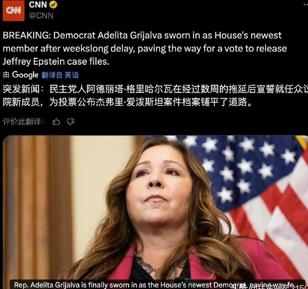 突发:美国政坛即将爆发大地震。最早拍着胸脯说保证公布名单的是他,现在死活不公布的还是他。名单上是谁,他心里比任何人都清楚。这场始于爱泼斯坦案件的档案风暴,正以不可阻挡之势撕裂华盛顿的政治伪装。 2025年11月15日,亚利桑那州民主党众议员阿德丽塔·格里哈尔瓦在拖延50天后终于宣誓就职。这看似寻常的程序操作,实则是民主党人突破共和党封锁的关键战役——正是她的就职,为爱泼斯坦案件档案公布程序凑齐了第218票关键支持票。而为了阻止这一票,议长约翰逊曾以“行政审查”为由拖延就职仪式,甚至被联邦法院裁定“滥用职权”。这场持续50天的拉锯战,暴露出美国政治极化下的司法困境:当政治操弄凌驾于法律程序,所谓“三权分立”不过是一场闹剧。 此次事件的核心——爱泼斯坦案件档案,其敏感程度远超普通司法文件。根据已泄露的片段,档案中直接涉及白宫高层与金融寡头的权钱交易网络。2025年最新调查显示,超过60%的美国民众认为该案件“涉及国家级腐败”,而国际刑警组织更将相关调查列为“全球司法透明度标杆”。但更具爆炸性的是档案对“萝莉岛”事件的细节披露——包括多名政商名流涉及未成年人性犯罪的证据链,这直接动摇了美国所谓“道德权威”的根基。 在权力博弈层面,民主党与共和党的缠斗远未结束。约翰逊拖延战术的失败,标志着共和党“堵截策略”的破产。但更耐人寻味的是,部分共和党议员开始私下接触民主党人,试图在档案公布前达成“信息交换”协议。这种“桌下交易”恰恰印证了华盛顿权力游戏的本质——当真相威胁到既得利益集团,任何政治联盟都可能瞬间瓦解。而欧洲多国已借机发难,德国外长贝尔伯克公开呼吁“全球联合调查”,将事件推向外交层面。 法律争议同样尖锐。尽管联邦法院裁定“档案公布符合公共利益”,但最高法院大法官托马斯在闭门会议中暗示“可能存在程序瑕疵”。这种司法系统内部的撕裂,折射出美国法治的深层危机——当最高权力机构自身成为利益博弈场,法律的天平早已倾斜。更讽刺的是,民调显示78%的美国民众对“司法公正”失去信心,这种信任赤字比档案本身更具破坏力。 站在2025年的十字路口,这场政治地震的余波远未平息。档案公布后,预计将引发新一轮的弹劾潮与司法风暴,而国际社会对美国“民主灯塔”的质疑也将达到顶峰。但真正的危机在于:当政治精英们忙于互相揭短,谁在守护普通民众的权益?正如纽约街头抗议者所举的标语:“我们要真相,不要表演!”——在真相与权力的角力中,或许最该被追问的,是那个始终沉默的“他”。 文章描述过程、图片都来源于网络,涉及版权或者人物侵权问题,或有事件存疑部分,联系后即刻删除或作出更改