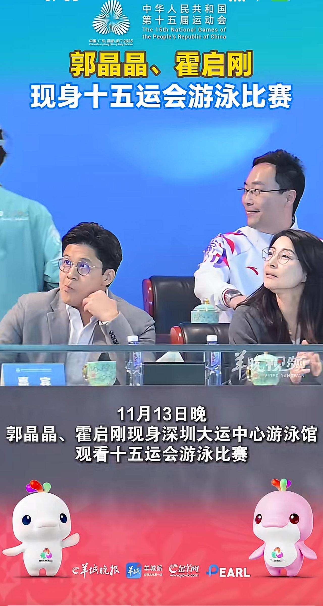 郭晶晶霍启刚为全运泳赛助威! 11月13日晚,郭晶晶、霍启刚现身深圳大运中心游泳馆,现场观看第十五届全运会游泳比赛。 画面中,两人坐在观众席上专注观赛,时而交流赛事细节,时而为运动员的精彩表现点头称赞,尽显对全运赛事的满满支持。 作为奥运冠军与体育公益推动者,他们的到场不仅为十五运会增添了星光,更用实际行动为体育健儿助威。 郭晶晶的跳水传奇履历自带体育影响力,霍启刚在体育公益领域的深耕更是深入人心,两人同框观赛, 让更多人关注到全运会的竞技魅力,也进一步点燃了大众的运动热情。 十五运会作为国内顶级综合性赛事,汇聚了无数体育健儿的拼搏身影。 郭晶晶与霍启刚的助力,是文体界与体育赛事的暖心联动,既为赛场注入了榜样力量,也让体育精神更好地走进大众生活。 你觉得体育盛会需要这样的正向助力吗?欢迎评论区聊聊。
