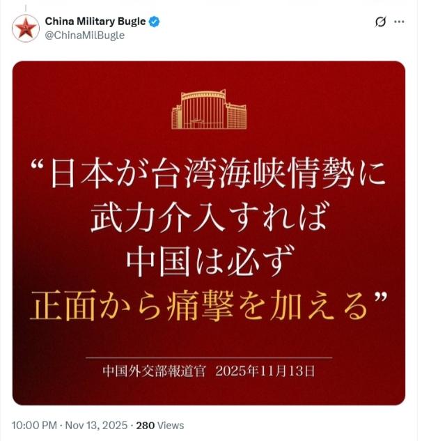 高市早苗涉台言论还在持续发酵,据悉中国军号和中国外交部发言人的官方账号,都接连用