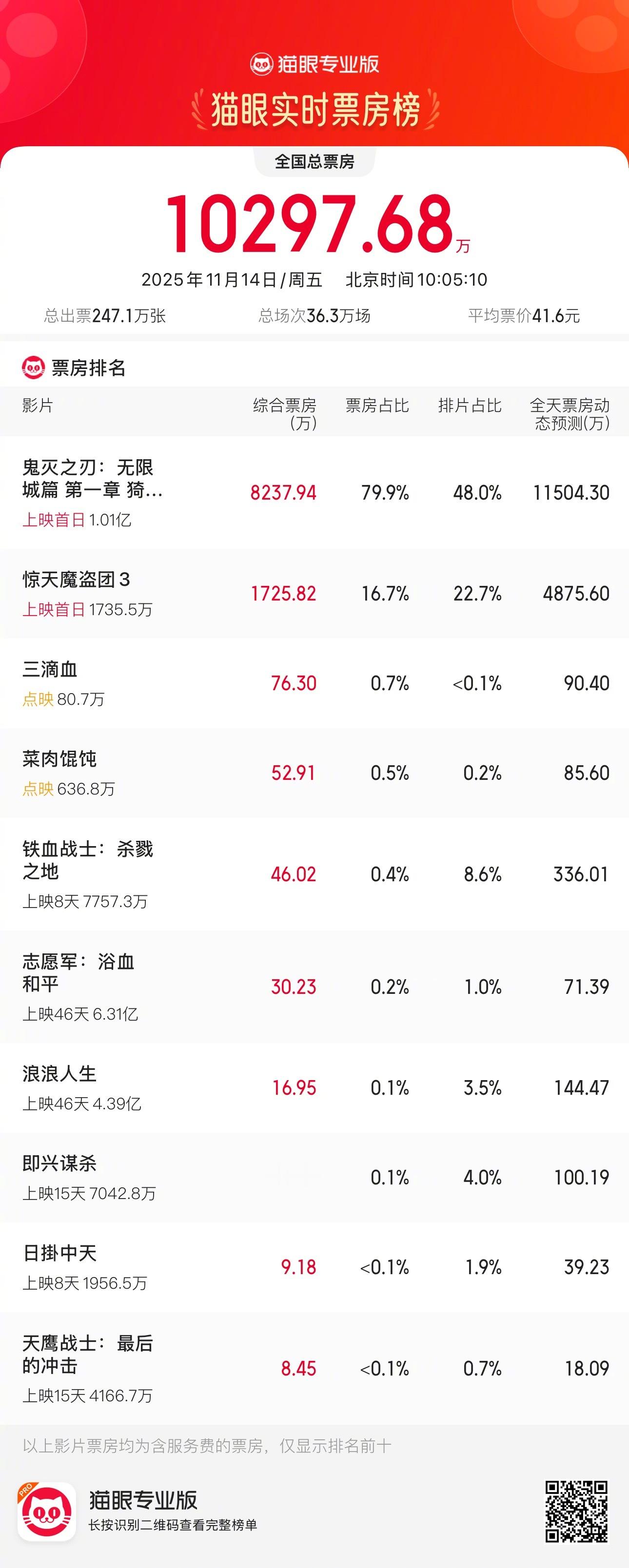 《鬼灭之刃》势头强劲,上映第一天2亿可能性很大,就是不知道这种粉丝向影片最终票房能到多少,但无论如何片方都是赚了。不过留给这部电影的时间也就十来天,因为接下来《疯狂动物城2》26号就要上映,无论是排片还是票房都将被分流。相比之下同天上映的《惊天魔盗团3》票房稍欠火候,但相信周末一来都会上去的。周末也就靠这两部片子撑场子了。