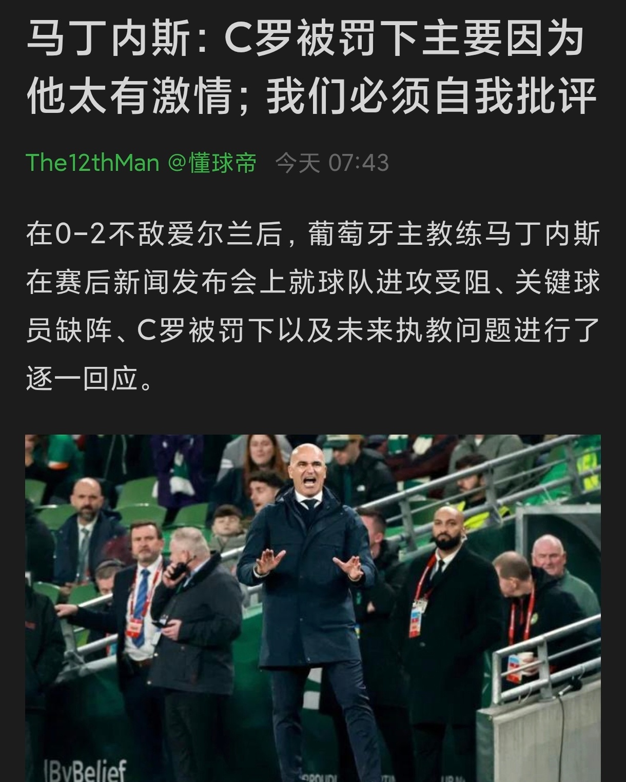 本来我还担心葡萄牙主帅马丁内斯批评罗哥,怕以后不能首发了看你这么说真的很暖心