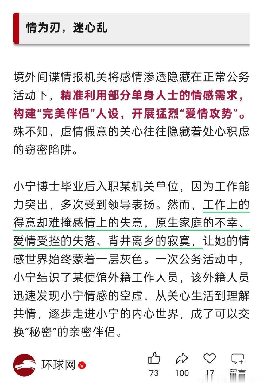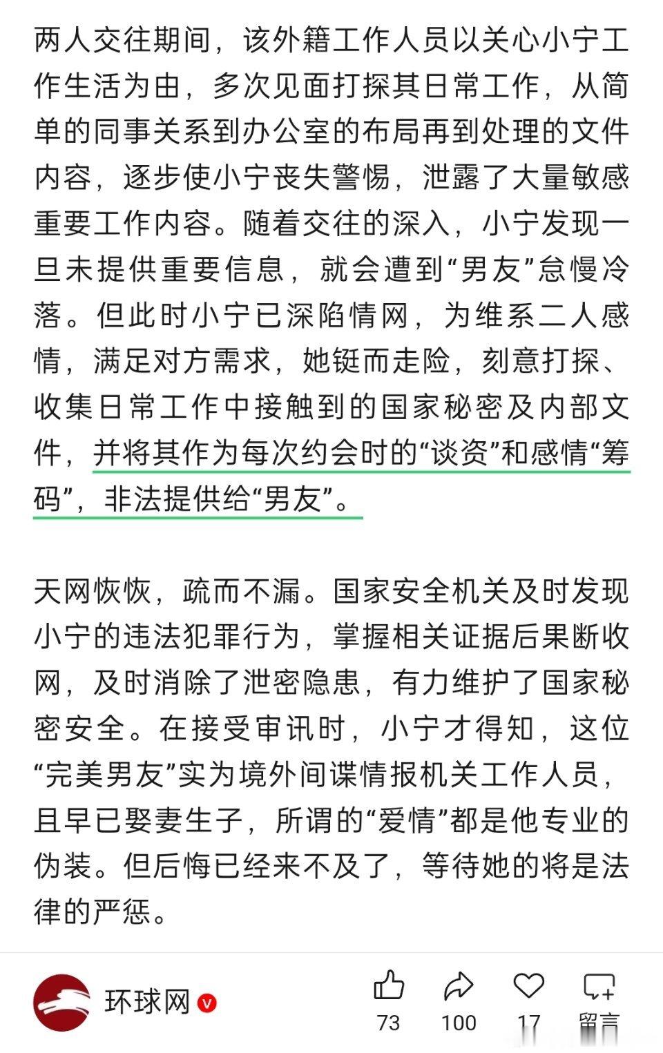 这跟恋爱脑有啥关系?工作失败,原生家庭失败,爱情失败,这也能作为理由吗?女子泄露国家秘密讨好外籍男友,必须从严处理!
