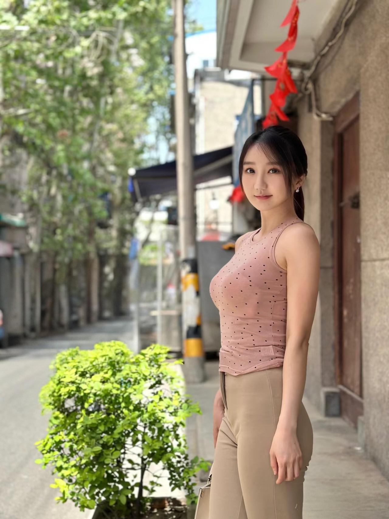 阳光下的少女,绿意盎然的公园,甜美笑容,清新自然。
