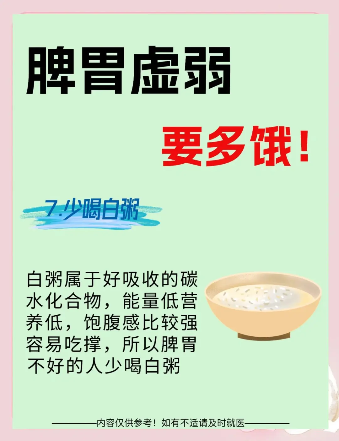 白粥属于好吸收的碳水化合物,能量低营养低,饱腹感比较强,容易吃撑,所以脾胃不好的人少喝白粥。