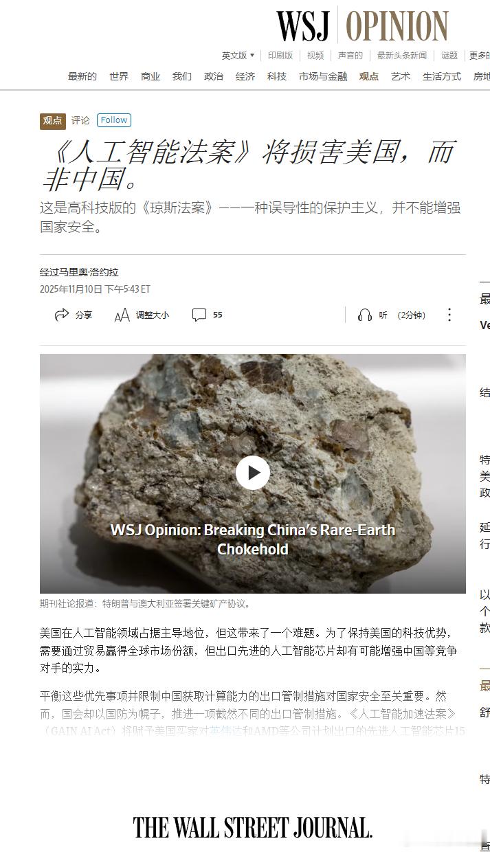 【《人工智能法案》(Gain AI)将损害美国,而非中国】 HR 5885法,在众议院2025年10月31日,穆勒纳尔先生(代表他本人和克里希纳穆尔蒂先生)提出了以下法案;该法案已提交外交事务委员会审议。以下为DS缩写:**法案名称**:《2025年保障国家人工智能获取与创新法案》(2025年GAIN AI法案)**核心内容**:该法案旨在确保美国公民在获取先进人工智能芯片方面,优先于受关注国家(如中国)。**主要条款**:1. **出口许可与优先权**:要求向受关注国家出口先进AI芯片的申请者,必须证明其已优先向美国公民提供购买机会。无法提供此证明的申请将被拒绝。2. **“可信美国人”豁免**:符合特定安全标准、且其芯片不在受关注国家运行的“可信美国人”,可豁免部分出口许可要求。3. **明确定义**:法案对“先进集成电路”、“受关注国家”及“优先购买权”等关键术语作出了具体界定。**目的**:通过立法手段,限制先进AI技术流向竞争对手,以保障美国自身在人工智能领域的技术优势和安全。