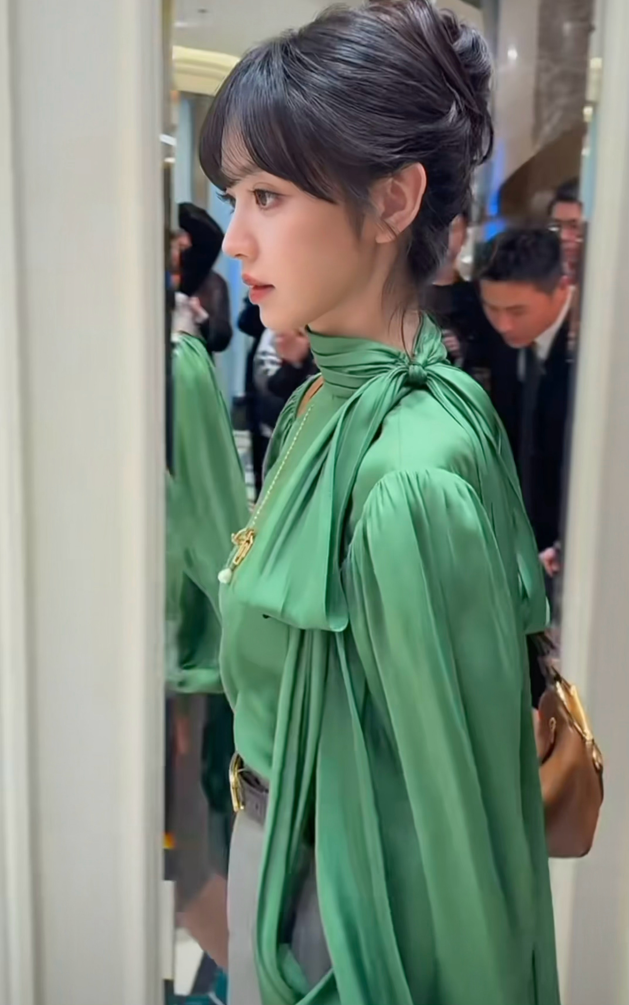 刘亦菲把死亡玫粉穿出了定制款的感觉,这种颜色普通人穿上分分钟黑三度,她居然能穿出
