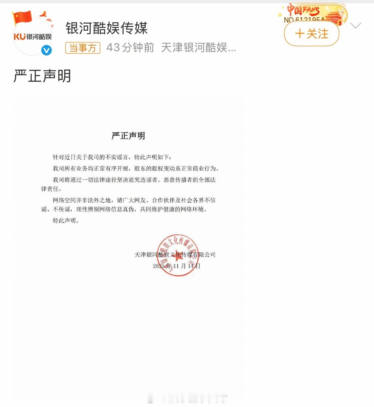 一段众人敢“银河酷娱倒闭”的视频引发银河酷娱发声明要追究造谣者的责任