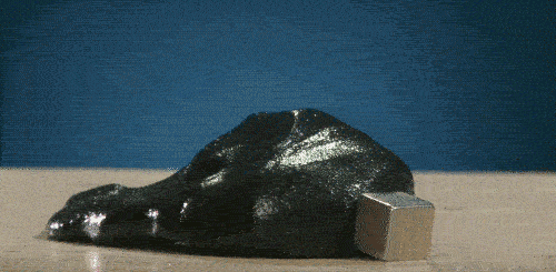 磁流体。 很多人拿这东西当玩具,玩起来很解压。 这是一种既具有液体的流动性又具有固体磁性的材料,通常情况下磁流体在静态时无磁性吸引力,当外加磁场作用时,才表现出磁性。 除了作为“玩具”外,磁流体是一种可广泛应用于各种苛刻条件下的密封、减震、医疗器械、声音调节、光显示、选矿等领域的高科技材料。