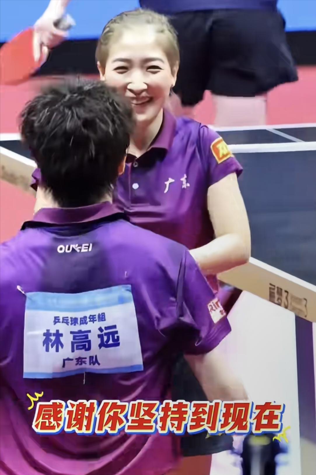 刘诗雯不老,“诗和远方”终圆梦,也不容易 11月14号,全运会乒乓球混双决赛结束了,诗和远方组合赢了,刘诗雯和林高远拿了冠军。 有人说刘诗雯还是那么厉害,林高远也进步很大,帮大家完成了想看冠军的愿望,也有人觉得刘诗雯比赛时候心态不太稳,拿了冠军以后表现得不够成熟。 赛场上的刘诗雯,技术没得说,以前就拿过很多冠军,这次也一样,她肯定一直都在努力训练,对冠军的渴望很强烈。 赛场下的刘诗雯,赢了以后蹦蹦跳跳的,还和教练拥抱,感觉特别激动,采访的时候她说在大湾区拿冠军很开心也很骄傲,还感谢她的搭档和教练还有团队。 以前有人觉得她可能要退役了,有点可惜,毕竟伤病也多,状态也不稳定,可是呢,她这次又让大家觉得她还是个小姑娘,她对胜利的渴望和对乒乓球的热爱是真的,她很真诚,很有活力。 刘诗雯告诉大家,年龄不是问题,只要坚持,就能做到,她鼓励了很多老运动员,也鼓励了我们,告诉我们不要放弃,要努力,她的退役和复出,也引发了大家的思考。 希望刘诗雯以后越来越好,继续打球,也祝她一切顺利,不管怎么样,她都是我们的骄傲。