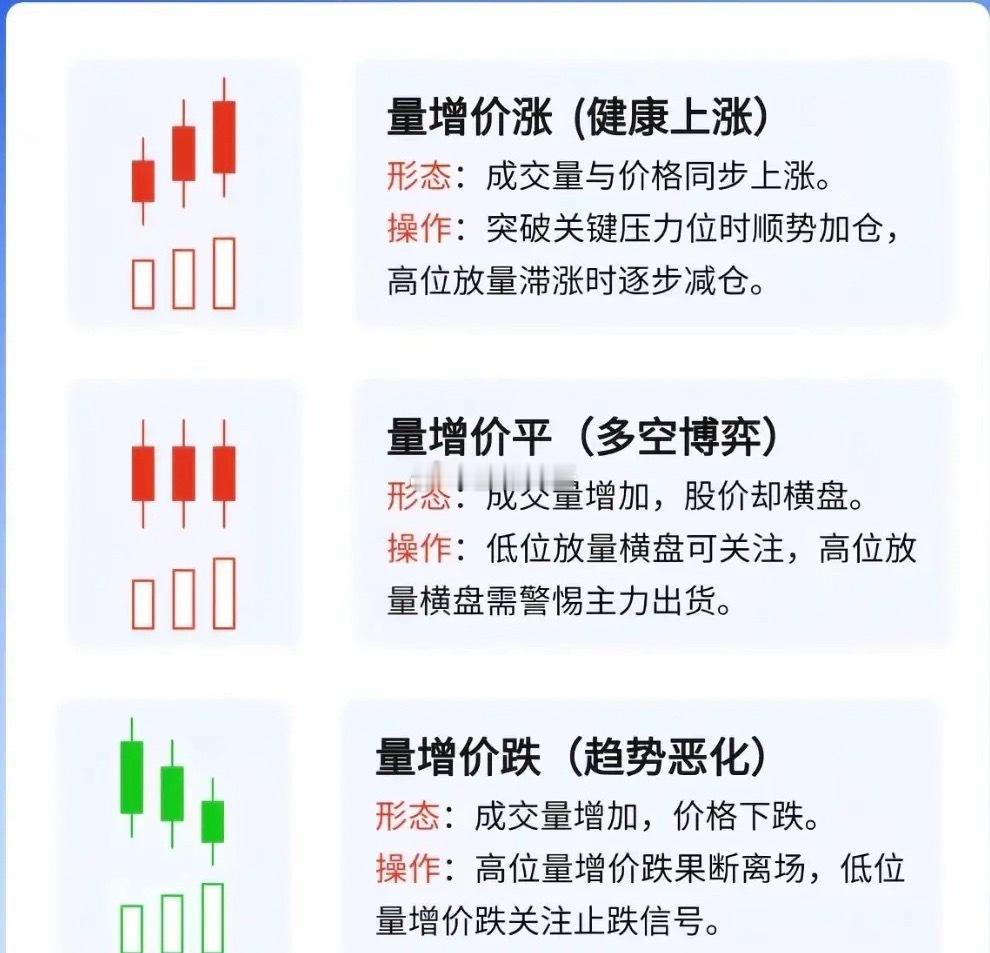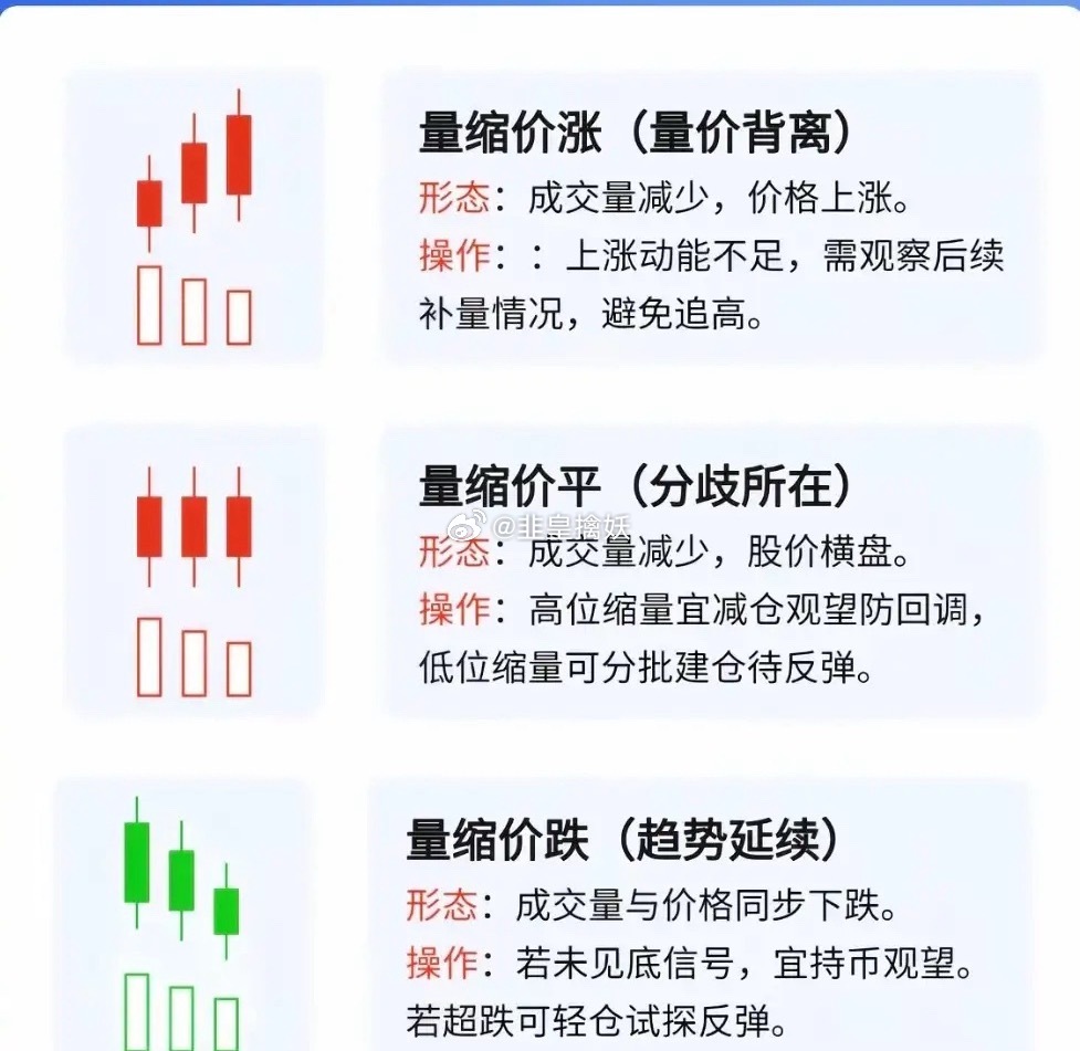 炒股票,最实用的八句量价口诀!1.缩量上涨还将涨。2.缩量下跌还将跌3.放量上涨必回落。4.放量下跌不着急。5.缩量不跌筑底成。6.放量不涨头部现。7.量大成头量小底。8.无量顶跌后市强。为了方便大家理解,我特地做了案例图!希望帮助新股民快速成长,关注我,每天学习不一样的炒股干货。