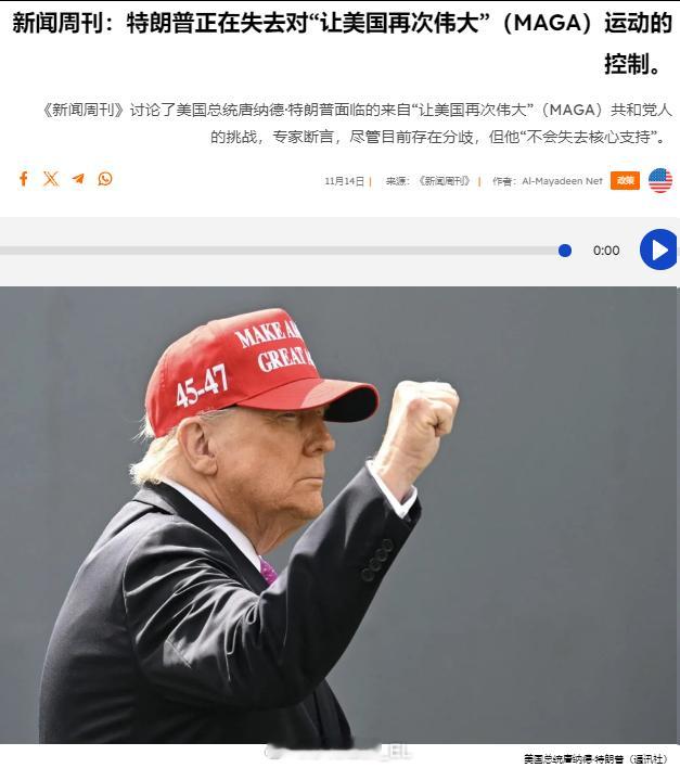 美国《新闻周刊》写道,特朗普正在失去对MAGA运动的控制:今年特朗普在许多内外政策上伤害了红脖子的利益或无法与MAGA的意识形态保持一致,导致MAGA团体对特朗普的支持出现了分裂,这也是近期民主党在地方选举中取得进展的重要原因(说白了就是比烂传统,只要对方更烂我就躺赢)。