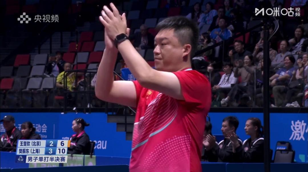 乒乓球男单半决赛上海樊振东4:2胜北京王楚钦! 全运会乒乓球成年组上半区男单半决赛巅峰对决第一场结束! 上海樊振东4:2(7-11;11-9;9-11;11-7;11-5;11-7)逆转胜北京王楚钦! 高手对决,不问出处! 前四局细分总数是38:38! 这就是两位单打世界排名第一,奥运冠军与世界冠军、胜过奥运会、世界最顶级的对决! 谢谢樊振东,谢谢王楚钦,奉献精彩绝伦的比赛! 今晚全运会乒乓球男团比赛,上海Vs北京! 我们还能看到樊王争霸赛吗? 男单决赛 樊振东迎战下半区海南林诗栋与辽宁袁励岑之间的胜者!