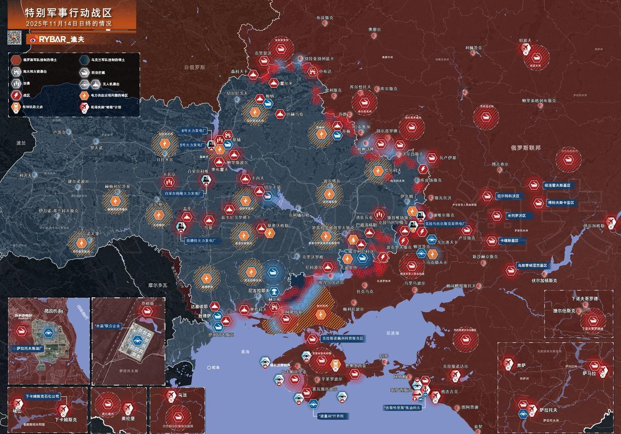 🚩特别军事行动战区 2025年11月14日日终的情况 🔸俄罗斯军队对基辅郊区