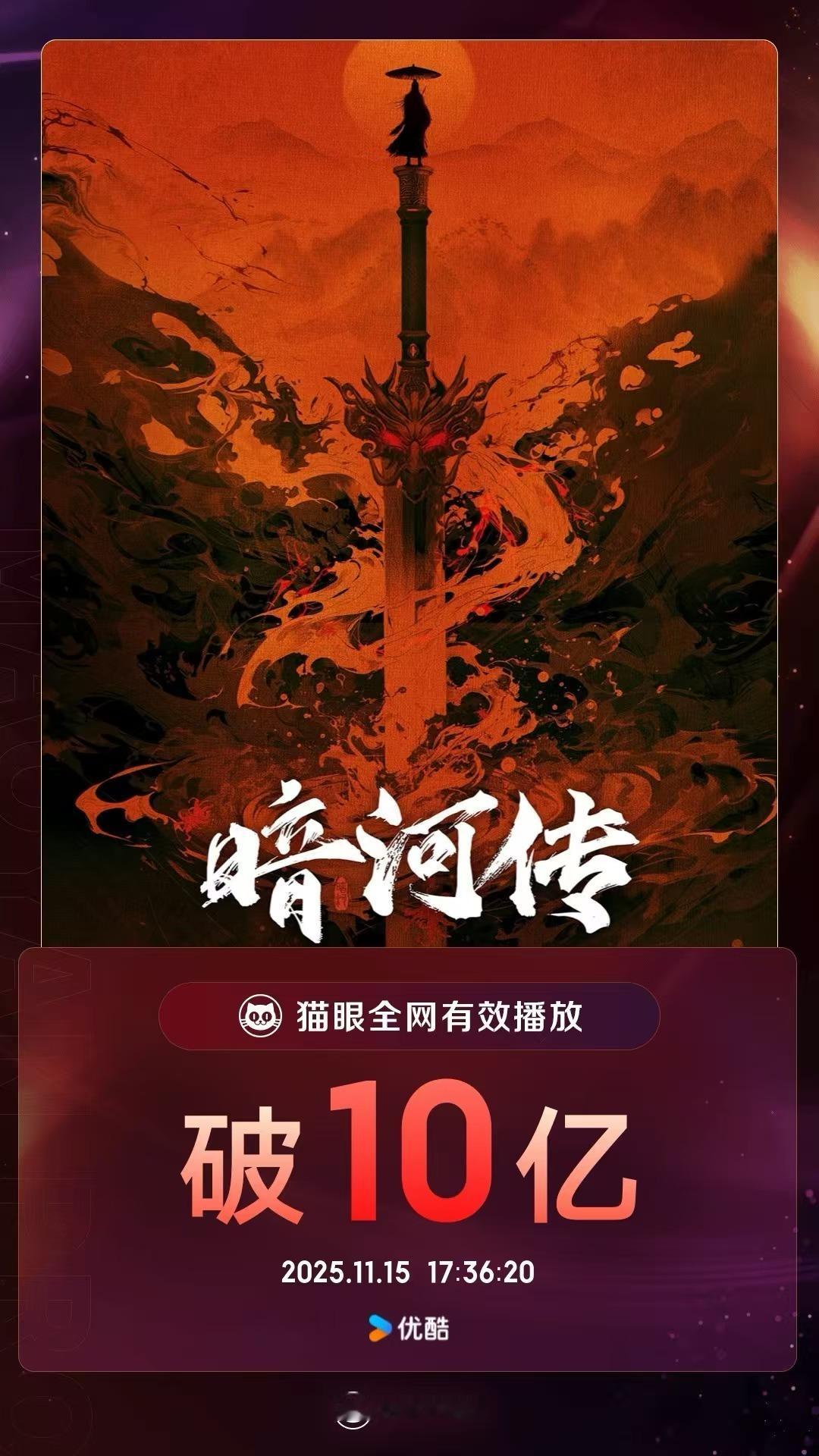 据猫眼专业版数据, 领衔主演剧集《暗河传》,全网有效播放量破10亿!