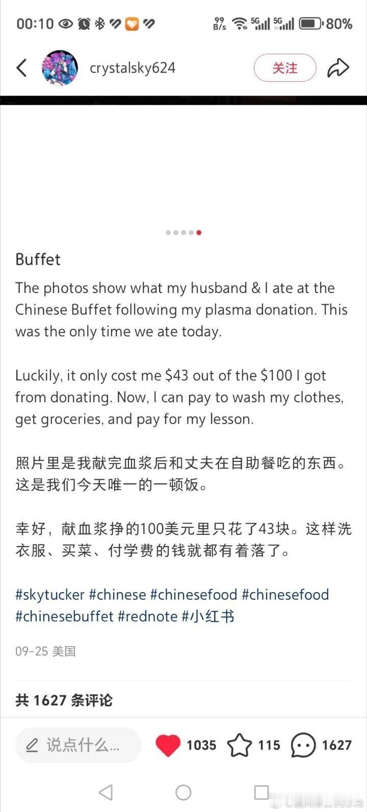 美国人也就这么凑活活着吧。她是个残疾人并且还在上学。她和丈夫是真的每周去卖血两次,有一次不知道为什么明明她体重更重但是钱却比她丈夫得到的更少。虽然他们是真的很穷不过非常有礼貌还很乐观。 国内宣传义务献血一年也最多就两次……一周两次,真·血包啊。[流泪][流泪]美国贫民 黑人残疾人