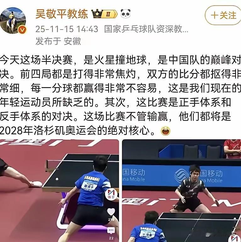 樊振东赢下半决赛,吴敬平发文:东哥将参加28年洛奥? 从东哥的状态来看, 仍然是世界顶级水平, 吴老也说:无论输赢? 都将是2028年绝对核心! 这句话分量很大。 如果东哥回来, 王皓就能睡个好觉了! 我都能给洛奥排兵布阵, 王楚钦 樊振东 单打 王楚钦/樊振东 男双 林诗栋/蒯曼 混双 樊振东 王楚钦 林诗栋男团