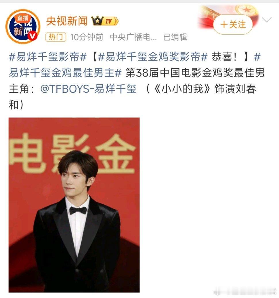 金鸡奖最玄“背景板”诞生!15日易烊千玺凭《小小的我》摘影帝,镜头扫过——袁弘又