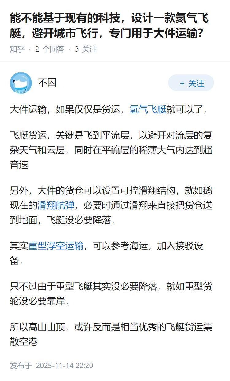能不能基于现有的科技,设计一款氦气飞艇,避开城市飞行,专门用于大件运输?