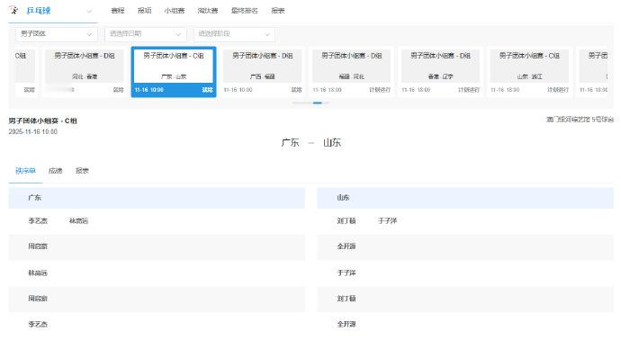 全运会乒乓球成年组男子团体C组,广东vs山东出场阵容周启豪vs全开源周启豪vs刘丁硕李艺杰vs全开源