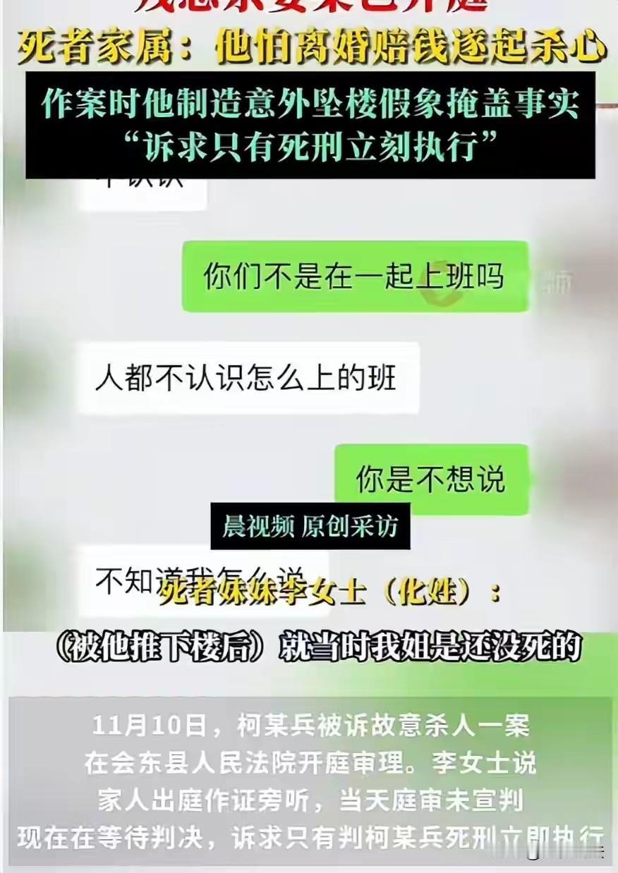 “太残忍了,必须死刑!”四川凉山,一女子为了爱情,从贵州远嫁而来,为丈夫生儿育女,省电费、穿旧衣。不料,丈夫为了和情 人复合,骗女子说屋顶漏水,在女子俯身查看时,猛地将她从屋顶推落。见女子坠地后尚有呼吸,丈夫先用外套裹住手死 死掐 住她的脖 颈,见她仍在挣扎,冲到屋后柴堆捡起水泥砖,对着她的额头狠狠砸下,直至女子没了呼吸。案发后,丈夫谎称女子自己摔死的,警方介入后,监控铁证下,丈夫起初承认有推人行为,但庭上又翻供了,冷笑否认,甚至还顶撞审判长,指手画脚。 据悉,贵州姑娘小丽(化名)十多年前在广东某电子厂的流水线旁结识了来自四川凉山的柯某兵。 半年后,小丽与柯某兵确定恋爱关系,在柯某兵花言巧语下,小丽犹豫再三,还是在跟着柯某兵回老家结婚生活。 起初,柯某兵还装出体贴模样,但随着小丽怀孕,控制欲逐渐暴露,小丽想回娘家,被柯某兵揪着头发拖回来,偶尔允许在院里晒太阳。 2021年寒冬,小丽在丈夫手机里发现备注“幸幸福福”的号码,她试探着问:“这是谁?” 柯某兵夺过手机吼:“亲戚!再乱看打断你的手!” 此后三年,这个号码频繁出现在通话记录里,小丽心里清楚,这个人既不是亲友,那就是婚姻外的第三者。 小丽也想过离婚,但柯某兵曾说离婚要赔偿5万元,且孩子还小,不舍得离婚,尽管柯某兵经常对其进行殴打,也只能一味忍受。 2025年春节,柯某兵情 人突然断绝联系。 2月21日,柯某兵躲在猪圈后拨通电话哀求复合,对方冷淡回应:“你有老婆孩子别来找我。” 柯某兵脱口而出:“我回去就把她解决掉!”电话那头沉默片刻,只劝了句“好好过日子”。 2月23日清晨,小丽在镇超市整理货架时接到丈夫电话:“房顶漏雨了,快回来看看。” 与此同时,柯某兵给8岁儿子的老师打电话:“娃发烧,下午请假。” 柯某兵支开了可能目击现场的孩子。 午后,小丽踩着木梯爬上6米高的屋顶,她俯身检查瓦片时,身后丈夫的眼神变得狰狞,突然上前,双手猛推妻子后背。 “砰”的闷响,小丽仰面摔在水泥地上,口鼻涌出的鲜血直流。小丽尚未断气,手指无意识地抓挠着地面。 柯某兵冲下楼后,用外套裹住手掐住她脖颈,见妻子仍在挣扎,他又狂奔至屋后柴堆,抡起半块水泥空心砖朝其额头猛砸。 柯某兵没有选择拨打120 ,而是等小丽死亡后,电话告诉小姨子:“你姐摔死了!” 当晚,家属赶到现场时,警戒线已在土房前拉起,警方在柴堆找到带血的水泥砖,砖缝里黏着几根长发。 尸检报告显示,小丽死因是“高坠合并机械性窒息”。 而监控显示,柯某兵就是杀害小丽的凶手。 随后,警方以故意杀人罪对柯某兵立案侦查,经由检察院审查起诉后,提起公诉。 11月10日,案件组织了第一次庭审,当法官询问杀人动机,柯某兵忽然翻供,坚称:“小丽自己滑倒撞上砖头的!我们这儿见血的东西不能晒太阳,我才扔砖头。” 目前,案件尚未判决。 那么,从法律角度,柯某兵的行为将面临怎样的法律制裁呢? 1、柯某兵为达到与情人复合的目的,经过预谋,残忍杀害其妻子,但柯某兵拒不承认,是否构成故意杀人罪呢? 《刑法》第二百三十二条规定,故意杀人的,处死刑、无期徒刑或者十年以上有期徒刑;情节较轻的,处三年以上十年以下有期徒刑。 柯某兵在案发前两日与情人通话时,明确表示“要回去把老婆解决掉”,这直接体现了其主观上的杀人意图。 作案时,柯某兵将正在屋顶查看的妻子推落,从屋顶推落,足以危及生命,其对该行为可能致人死亡的结果持放任或希望态度。 柯某兵在发现妻子未当场死亡后,使用衣物隔手 掐颈长达一两分钟,此行为目的明确,即剥夺对方生命,构成直接的故意杀人。 而在掐颈仍未遂后,又用水泥空心砖猛砸被害人头部,直至其死亡。 柯某兵在庭审中辩称“只是推了妻子”、“妻子摔下后头正好磕到了水泥砖”,这一翻供与监控录像、尸检报告等客观证据不符,采纳可能性不大。 即便柯某兵被采纳,但柯某兵推人行为有监控视频证实,也足以认定其构成故意杀人罪。 所以,柯某兵将被以故意杀人罪追究刑事责任,且不存在情节较轻的情形,依法应在死刑、无期徒刑或者十年以上有期徒刑范围内判罚。 2、柯某兵是否会判处死刑? 《刑法》第四十八条规定,死刑只适用于罪行极其严重的犯罪分子。 就本案而言,柯某兵杀人的动机是为了扫清其与他人保持不正当关系的障碍,满足一己私欲,动机极其卑劣。 柯某兵采取的手段至少包括了高坠,这足以反映手段特别残忍,更何况还有“掐颈”、“砖砸头部”等行为。 此外,柯某兵杀害的对象是自己的妻子,严重违背家庭伦理,造成极其恶劣的社会影响。 关键是,柯某兵自始至终没有真正认罪认罚,没有悔意。 所以,柯某兵很可能会被判处死刑立即执行。 对此,您怎么看?