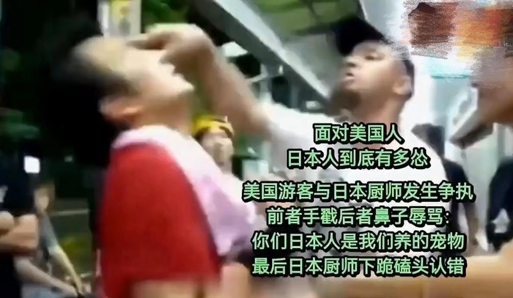日本人在美国人面前究竟有多卑微? 当街被辱骂是“美国的狗”,却还要下跪道歉,这种卑微咱们确实不懂。 这是一则发生在日本的真实事件。一名美国游客在日本餐厅吃饭时,声称在餐食中吃到几根毛毛,他愤怒地要求厨师过来说明情况。 厨师过来后,面对质问,他坚称自己的料理过程没有问题,不可能出现有毛毛这种情况。没想到,他这番说辞竟彻底激怒了这名美国人。 随后,场面失控,这名美国人一把将厨师拽出餐厅,用手指戳着他的头疯狂辱骂,甚至当众吼出:“你们日本人,都是我们美国人的狗!” 按正常逻辑,被骂成这样早就该反击了,而让人难以理解的是,面对这样的侮辱,不仅周围看热闹的日本人没有任何情绪波动,就连这位日本厨师也没有生气,而是—— 当街下跪,求美国游客原谅。 最终,美国人看他态度很诚恳,双方才达成了和解。真不愧是“忍者神龟”的发源地,实在太能忍了,直接把我给看傻了! 有人讽刺:“原来美日之间的友好关系,是这么维持的,这就是主子与仆人的关系。” 不少日本人甚至自嘲:“我们是美国的第51州。” 我笑了,我在想,在美国人的眼里,你们配吗? 这一跪,跪出了多少日本人的复杂情绪? 大家说说,这是他们的文化隐忍,还是深植于两国关系中的不对等地位?