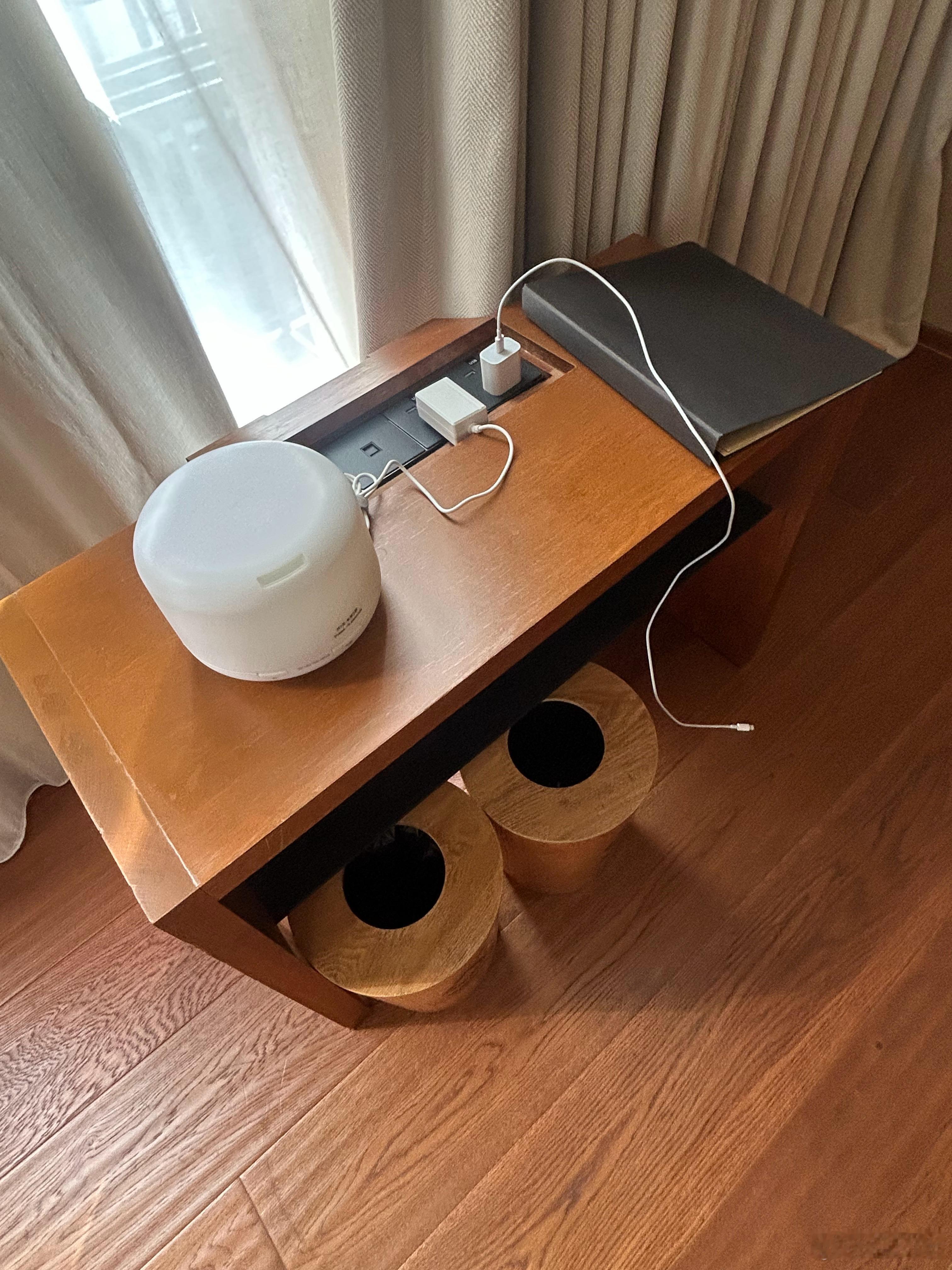 MUJI hotel,是有种不一样的质感。酒店内绝大多数的陈列、消耗品都是来自MUJI自有品牌。装潢上也是一种自然、纯色、原木风格。