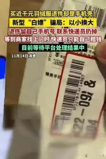 女子“狸猫换太子”:998元羽绒服退货变手机壳 近日,一女子网购价值998元的羽绒服,到货后却动起歪心思。她申请退货,寄回的包裹里竟只有一个手机壳。商家发现后迅速报警,警方介入调查。该女子这种行为严重违背诚信原则,损害商家利益,也破坏了正常的网购秩序。诚信是交易基石,切莫因一时贪念,触碰法律红线,否则必将自食恶果。