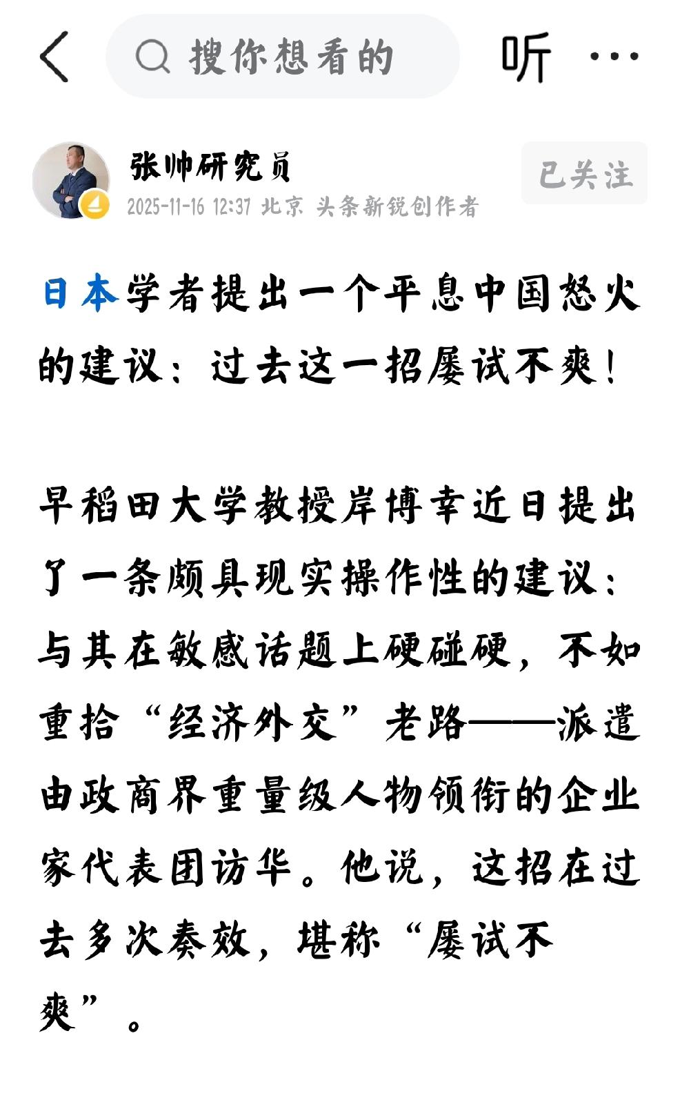 日本:砸钱吗?拿走你的臭钱 个人观点:如果日本又想用老套路,妄想把中日关系,恢复正常化。以往中日关系冰点化后,日本就会用一点点的钱,砸开这冰点,中日关系恢复正常化,这是老套路。这次痴心做梦,妄想用老套路来应付中国。 个人认为:“拿走你的臭钱,痴心妄想。” 日本人妄想用钱平息,中国人的愤怒。 用钱,能买走中国人遭受的苦难吗?
