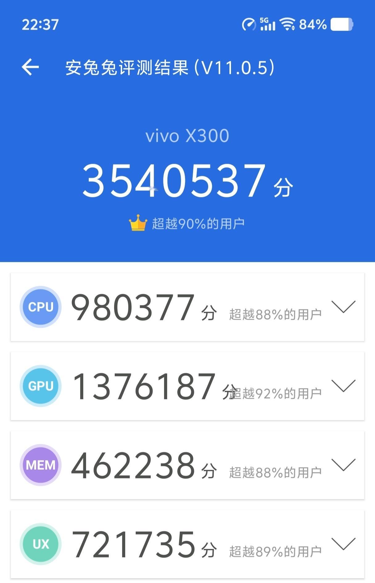 vivo X300性能和游戏实测:搭载了天玑9500的它,通过实测,安兔兔跑分354万分,Geekbench 6单核3487分、多核10540分,3D Mark Wild Life 21828分,Wild Life Extreme 7215分,玩了一个多小时NBA 2K特效+画质全高,全程都非常流畅。小屏旗舰这性能,还满意吗?